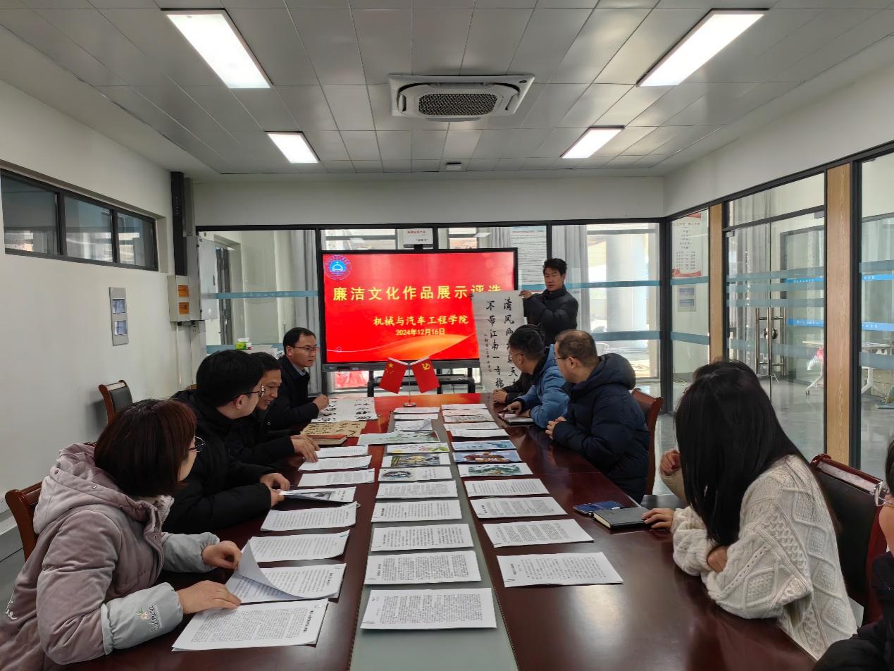 本网讯 为推进学院廉洁文化建设,进一步夯实清正廉洁思想根基、弘扬崇廉拒腐校园风尚,12月16日,机械与汽车工程学院开展廉洁文化作品征集展示评选活动。学院纪委委员、系部教师代表、辅导员代表、学生代表共同参与作品评选活动。