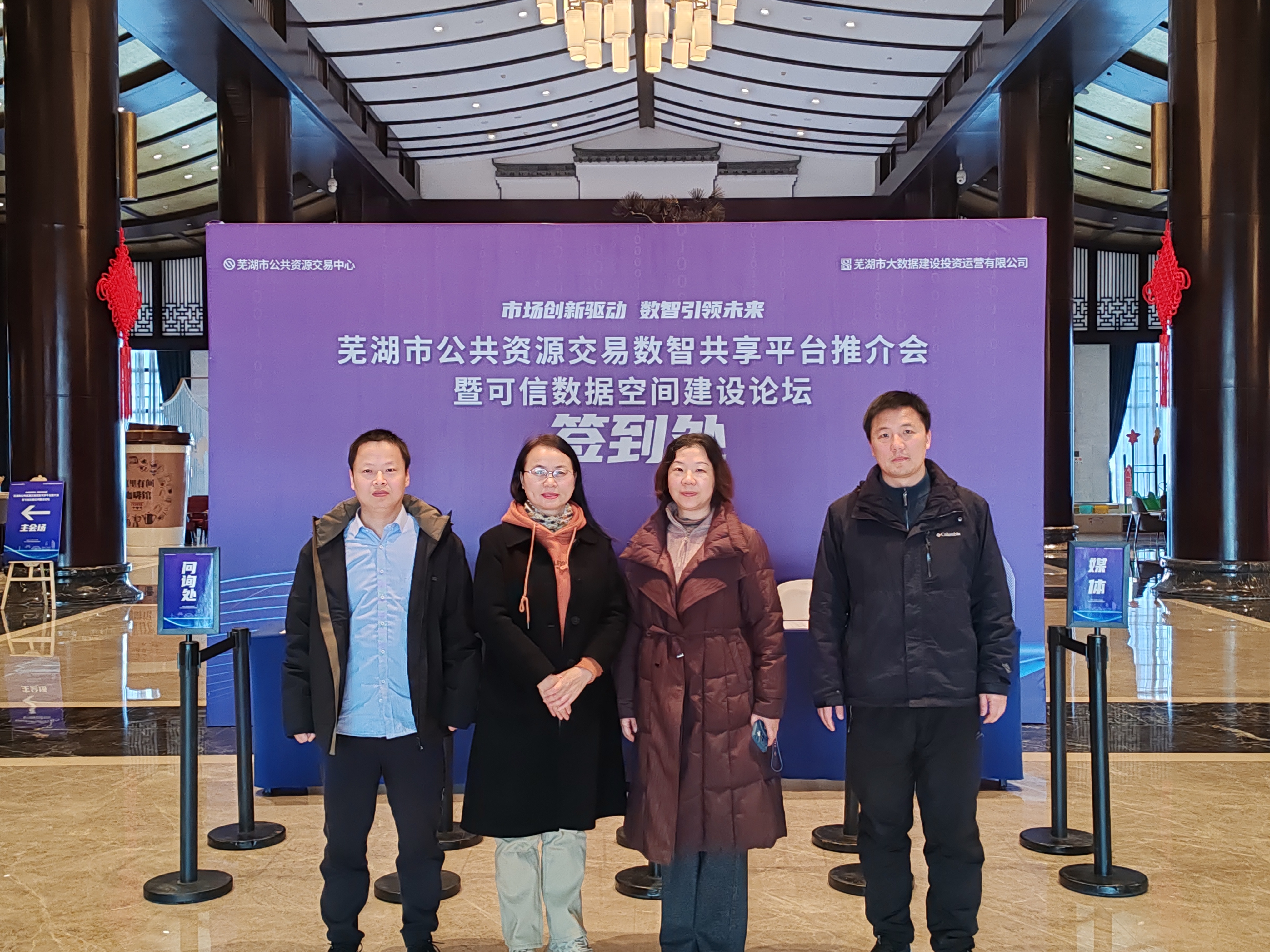 本网讯 12月19日,芜湖市公共资源交易数智共享平台推介会暨可信数据空间建设论坛在芜湖新华联丽景酒店召开。会议由芜湖市公共资源交易中心、芜湖市大数据建设投资运营有限公司主办,计算机与信息学院副院长刘涛,专业教师陶皖、皇苏斌、章平参加了本次会议。