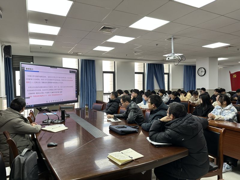 本网讯 12月27日,以“全国大学生数学建模竞赛研讨交流”为主题的第15期创新创业沙龙活动在数理与金融学院T1612会议室举行。应教务处、数理与金融学院邀请,安徽大学朱家明教授和我校数理与金融学院区块链工程系主任邓寿年作为本次活动的主讲嘉宾与大家进行了分享交流,校数学建模指导团队部分骨干教师和来自全校的近60名同学参加活动,活动由学院副院长张培雨主持。