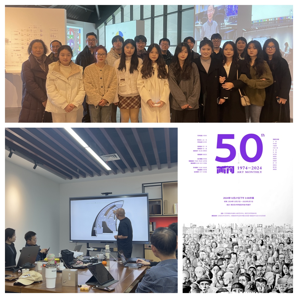本网讯 12月27日,由江苏凤凰美术出版社·《画刊》杂志举办的“《画刊》1974-2024”50周年纪念展在南京艺术学院美术馆开幕。由设计学院和计算机与信息学院联合组建的“智能设计学科交叉团队”师生共同开发的“《画刊》数字资源智能应用平台V1.0”及部分可视化系作品深度参与了本次展览的数据支持和视觉呈现工作。