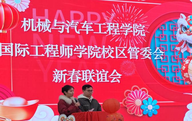 本网讯 1月10日,机械与汽车工程学院联合国际工程师学院校区管委会举办以“砥砺前行开新局,齐心协力绘宏图”为主题的新春联谊会,机械与汽车工程学院、国际工程师学院校区管委会100余名教师、家属及退休教师代表参加活动。活动由刘金朵和王旭成两位博士主持。