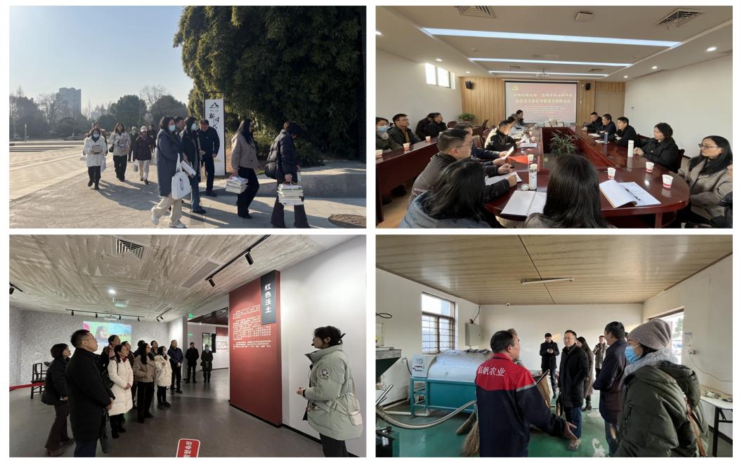 联学活动结束后,全体党员在讲解员的引导下参观坐落在保定街道莲花湖畔的渡江第一船纪念馆。通过聆听讲解、参观展厅内陈列的大量珍贵的历史照片、文献资料和实物展品,党员们详细了解了渡江第一船的历史背景、战役场景以及革命先烈的英勇事迹,让大家对革命先辈们的无私奉献和伟大牺牲精神有了更加深刻的认识。随后,党员们在王如高的带领下实地参观团洲村弘帆油厂菜籽油加工基地。王如高介绍了油厂的建立和运营情况,弘帆油厂是我校援建团洲村的项目之一,油厂的建立为村里提供了就业岗位,壮大了村集体经济,为农业可持续发展提供了新路径。