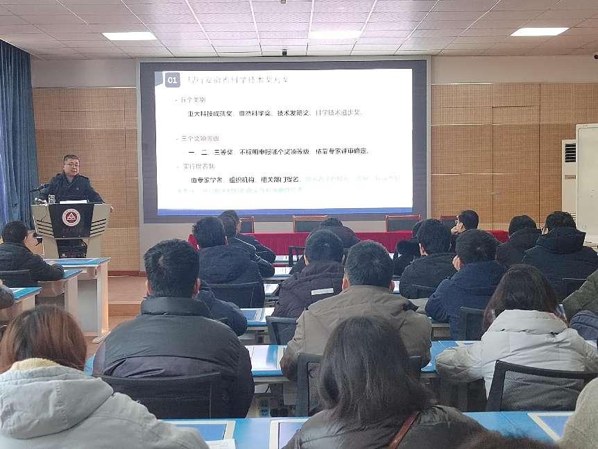本网讯 2月19日,生物与食品工程学院在虚拟仿真中心举办2024年度安徽省科学技术奖申报辅导报告会,我校科技处负责人王宗乾应邀作辅导报告,生物与食品工程学院院长葛飞,相关学院院长、教师共计70余人参会。报告会由葛飞主持。