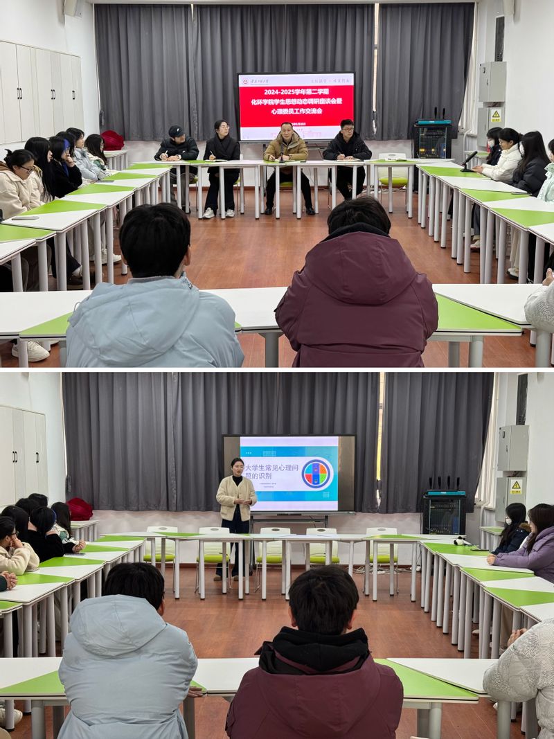 本网讯 为全面、深入地了解新学期学生的思想动态及心理健康状况,进一步提升学院的教育管理服务水平,2月25日,化学与环境工程学院在学院学生能力发展中心成功举办了学生思想动态调研座谈会暨心理委员交流会。此次会议旨在搭建一个平台,让学生代表与学院管理层能够面对面交流,共同探讨学生成长成才之路。学院党委副书记胡承功、辅导员以及各班级心理委员参加了此次活动。本次会议特别邀请校心理健康教育中心李梦菊老师为心理委员作专题培训。