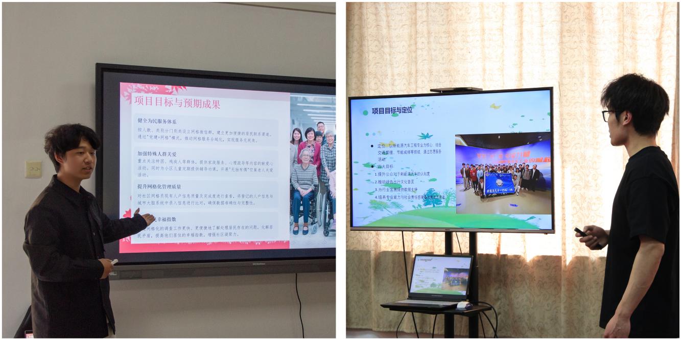 各项目负责人以PPT汇报的形式,围绕项目背景、活动开展情况、独特优势、后续规划等方面展开汇报。评委认真倾听每一组的答辩汇报,从项目实践性、创新性、可持续性及团队协作等维度进行综合评分,并针对项目优化提出专业建议。