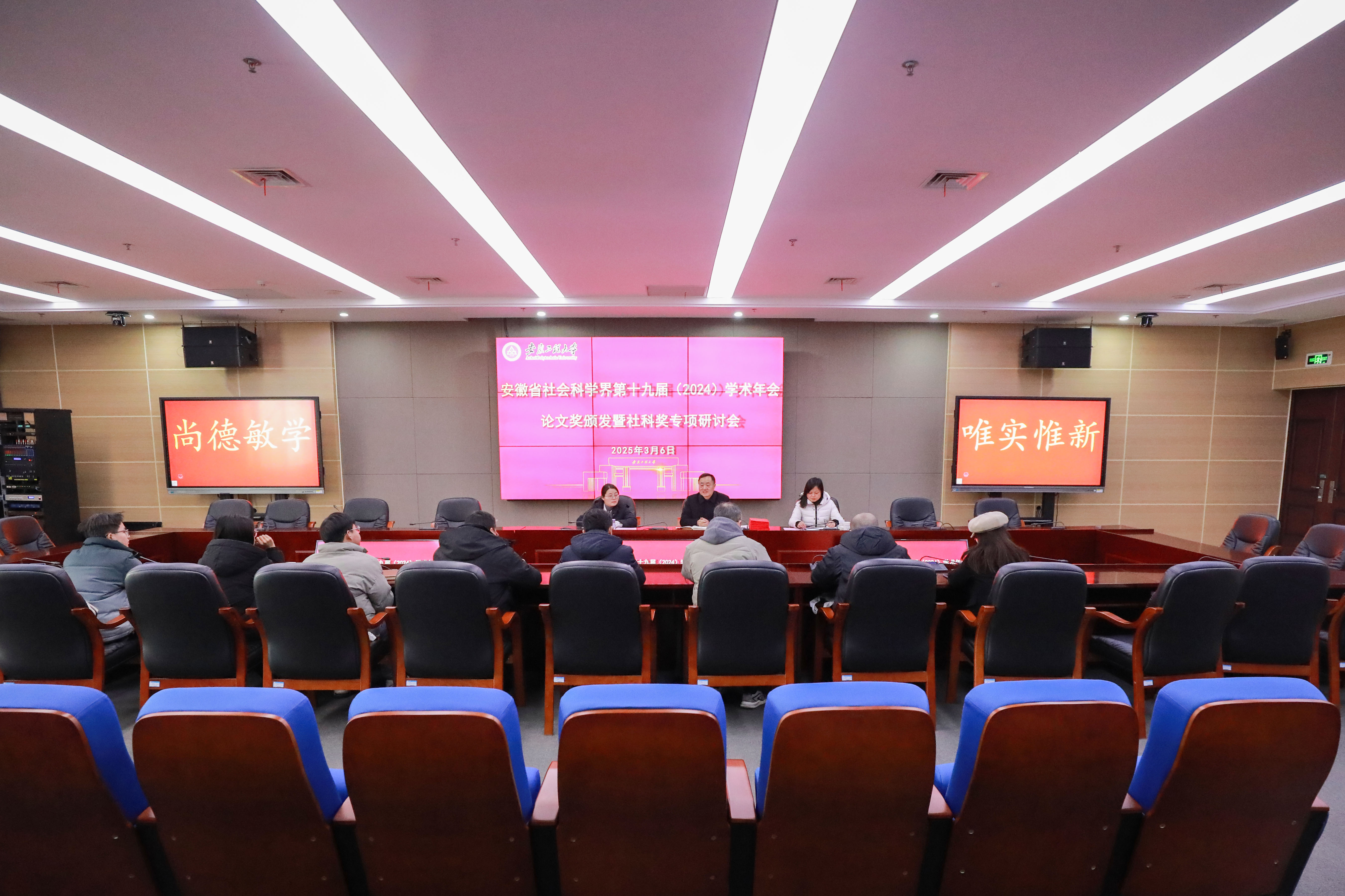本网讯 3月6日,学校在图书馆201会议室召开安徽省社科界第十九届(2024)学术年会论文奖颁发暨社科奖专项研讨会。宣传部、科技处等部门负责人、获奖教师和学生代表参加会议。会议由校党委常委、宣传部(统战部)部长孙浩然主持。