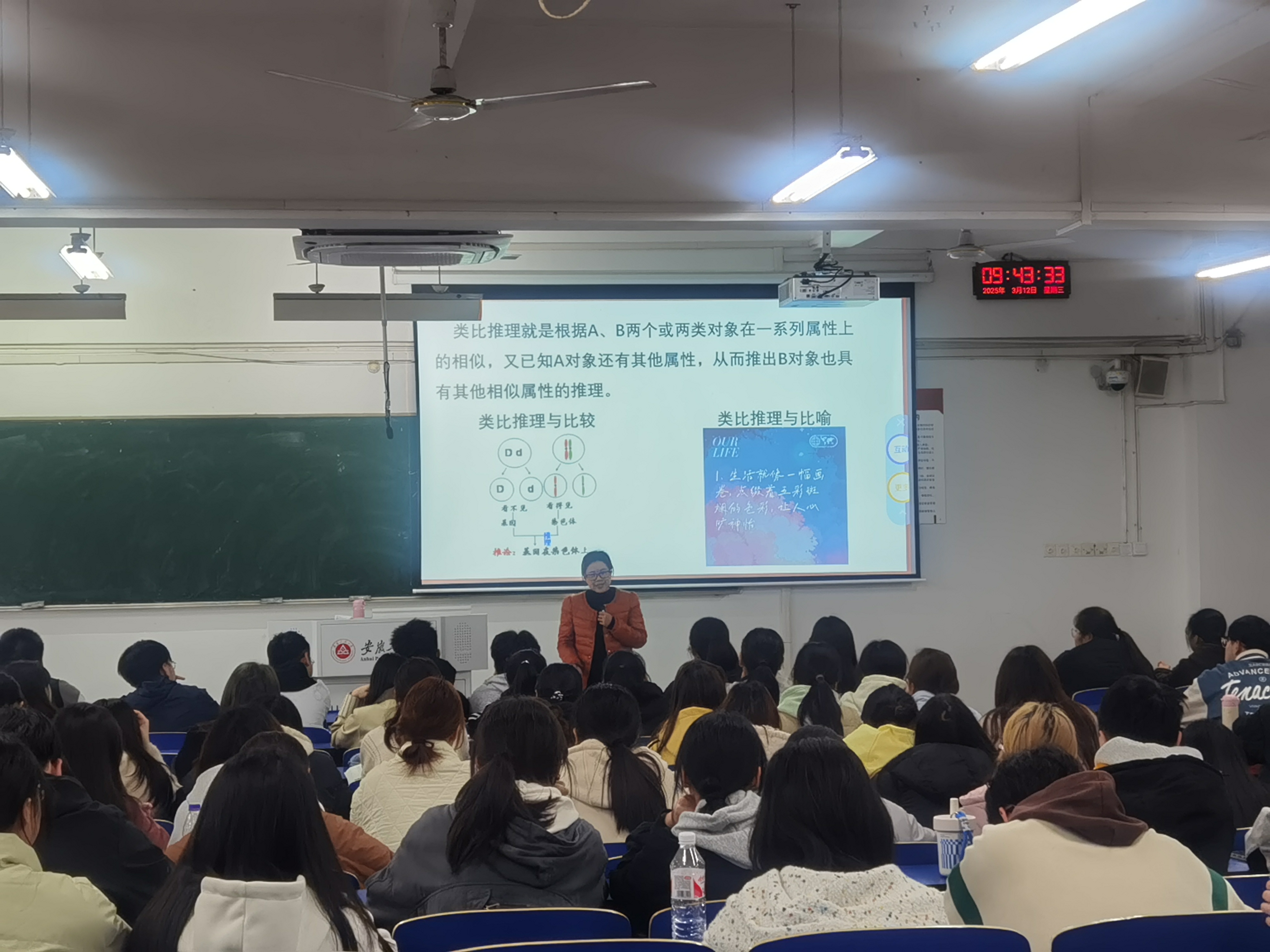 本网讯 为充分发挥优秀教师示范带动作用,进一步提升教师课堂教学能力,在我校“金”彩一课示范教学活动开展之际,3月12日,人文学院在6教111教室组织开展了“金”彩一课示范教学观摩活动,由法学系教师邓琼讲授《法律逻辑学》示范课程,各学院10余名中青年教师参加观摩。