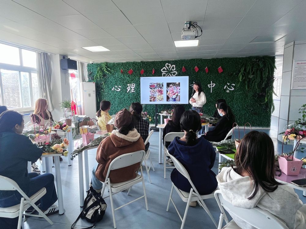 本网讯 为贯彻落实学校“三全六专”育人实践,缓解学生压力,增强心理韧性,强化朋辈间的人际互动。在校“巾帼筑心梦、芳华启新篇”女生心理健康教育周期间,心理健康教育中心于3月11日组织开展一场别开生面的“以花之美,塑己心灵”花艺团体心理辅导。本次活动由花艺师张群进行花艺知识讲授和插花指导,来自不同学院的14名女生参与。