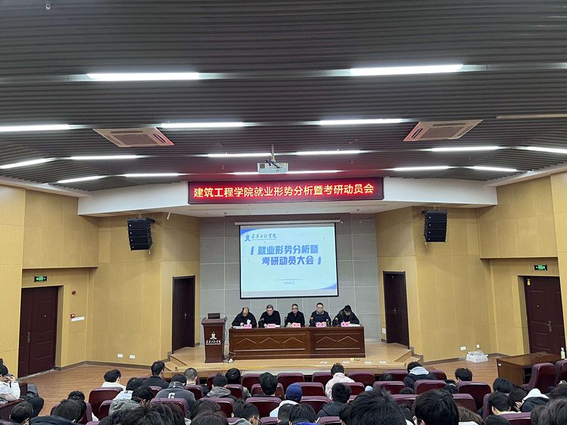 本网讯 为帮助同学们更好地了解当前就业形势,明确未来发展方向,激发考研热情,3月20日,建筑工程学院在学院三楼报告厅组织召开就业形势分析会暨考研动员会。学院党委书记李烨、院长曾磊、副院长曹兵、张明出席,学院200余名师生参加了会议。学院党委副书记张礼波主持会议。