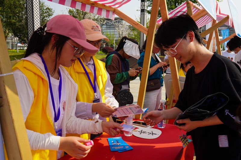 “反邪转转转”和“反邪大作战”旁集聚着学生们,通过回答转盘内反邪教相关知识问答、套中印有反邪小知识的大鹅获得定制礼品。学生们在欢声笑语中进一步加深了“反对邪教,崇尚科学”的认识,并表示在日后的学习生活中要自觉远离邪教、抵制邪教,防范邪教。