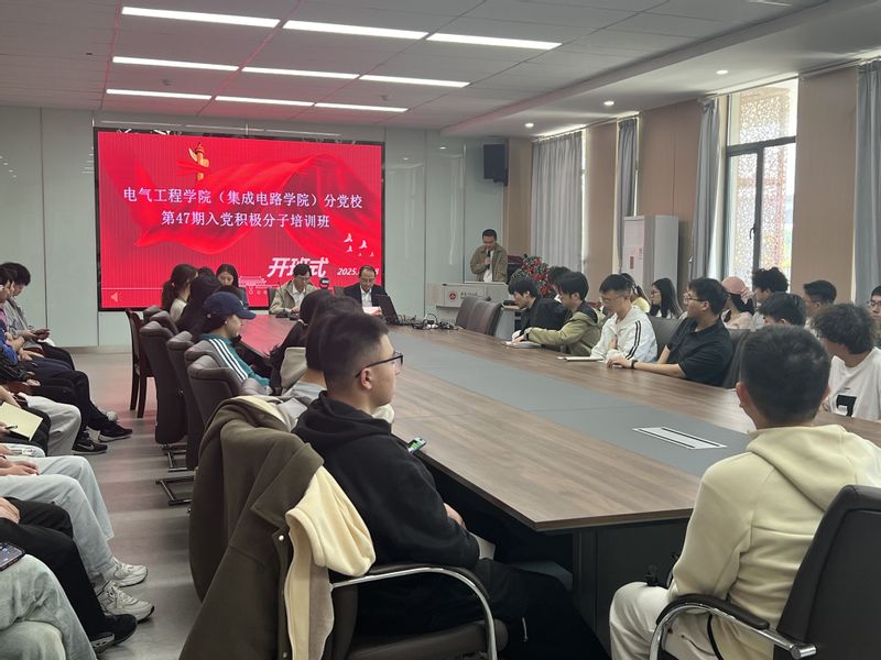 本网讯 4月8日,电气工程学院(集成电路学院)第47期入党积极分子培训班开班式在国际工程师学院校区206会议室隆重举行。学院党委书记杨会成、党委副书记迟传德、组织员滕敏出席活动,近三百名学员通过线上线下相结合的方式参加。开班式由培训班班主任阳岚主持。
