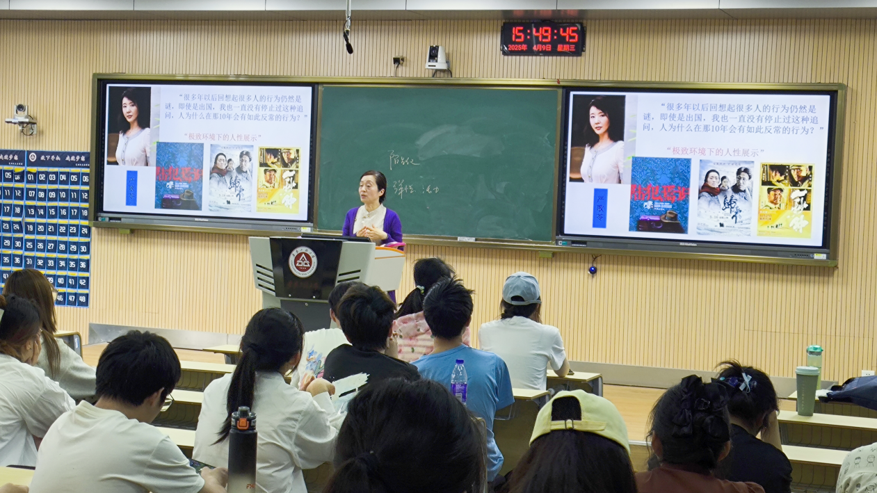 闫石以“是关注历史大事件还是普通人生活的小说更为打动人”的问题为引,深入浅出地阐述了文学作品“故事契合、语言愉悦、情感真挚”的三大动人特质;以《第一炉香》为例,提出“敏锐、丰富、特殊、精微”四步走的文学欣赏途径。闫石指出,描写人性,关注生存状态的作品就是最打动人的作品。她鼓励同学们多阅读经典,在文学中走近普通人的生活,去体验更丰富的人生,去理解文学的本质,同时也去理解个体存在的意义。她期待同学们进一步提升文学鉴赏能力,认识文学、欣赏文学、爱上文学。