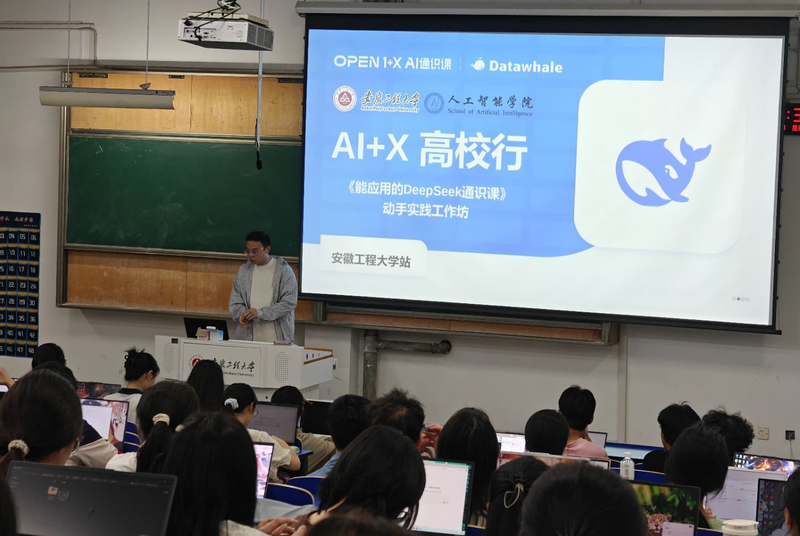 本网讯 为激发学生对AI的兴趣,推动AI技术的普及与应用,进一步增强我校学生将理论与实践结合的能力,4月20日,由人工智能学院和Datawhale联合主办的“智学坊”之“AI+X高校行”DeepSeek主题活动在主校区6J215顺利举办,全校各专业255名同学报名参与。