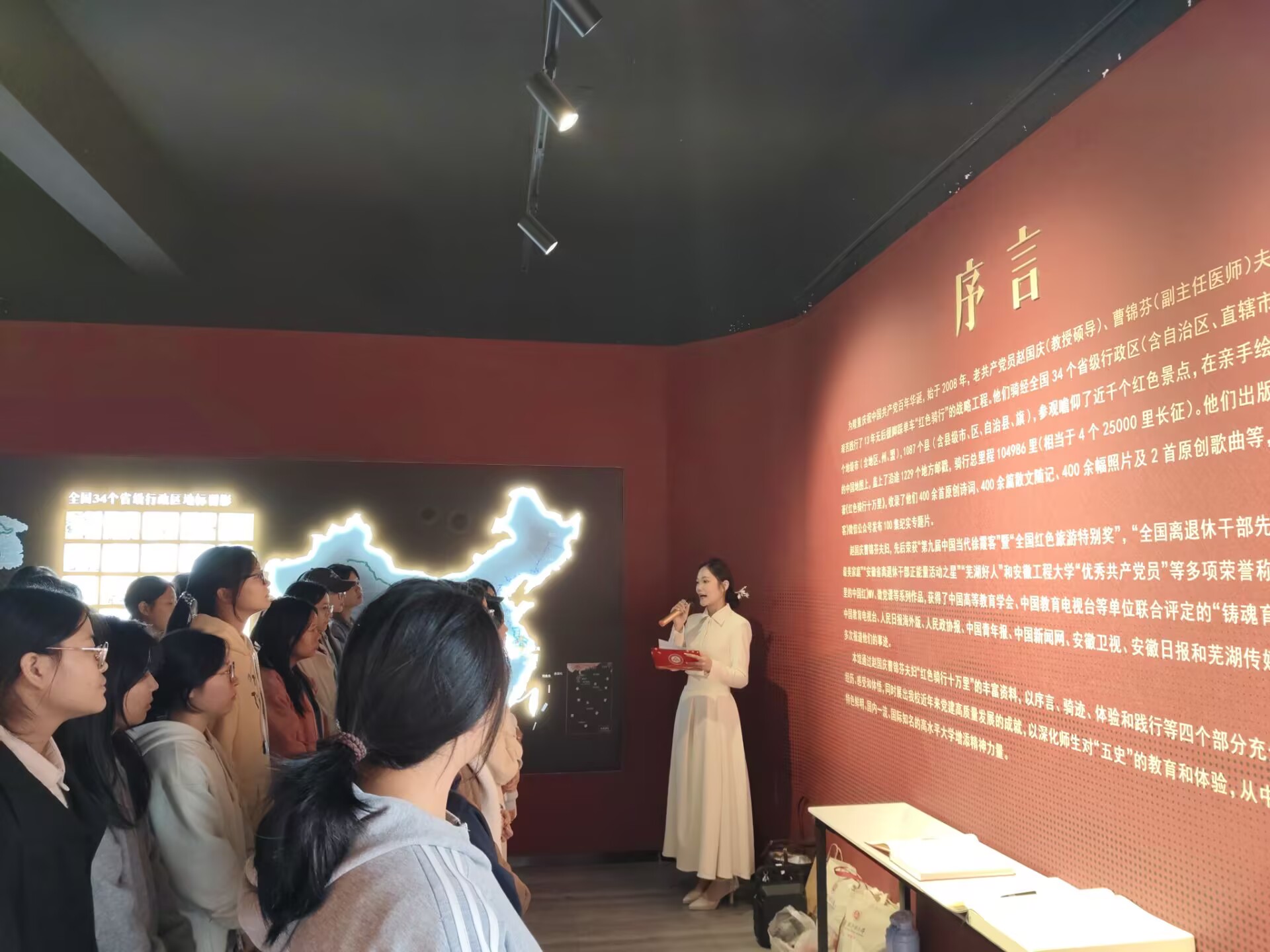 新生分批走进红色“骑”迹体验馆,接受沉浸式教育。在讲解员的细致解说下,同学们通过图片资料、实物展陈、情景复原等丰富形式,循着赵国庆、曹锦芬两位老党员的骑行足迹,重温党在不同历史时期的奋斗历程,深刻感受到党的优良传统、红色基因与初心使命。一幅幅鲜活的场景、一个个感人的故事,让在场新生深受触动。