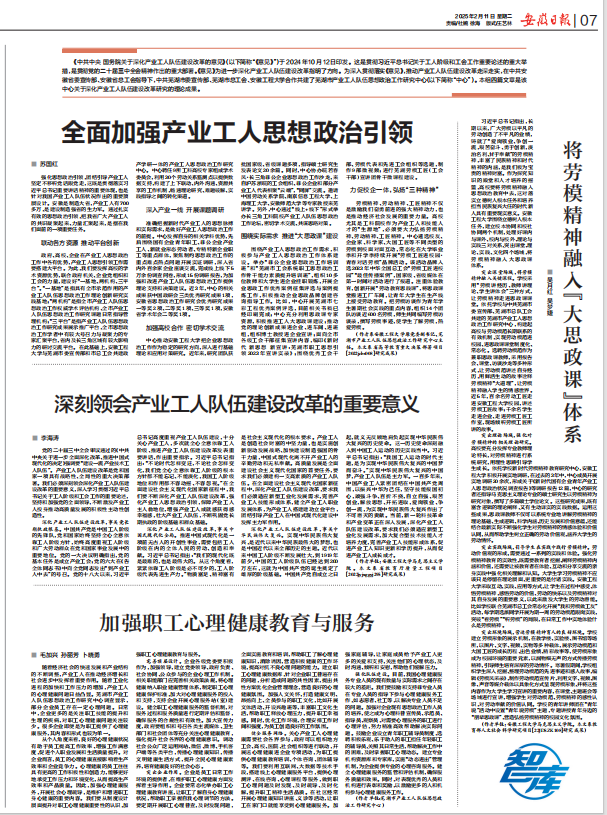 (《安徽日报》理论版集中推介我校育人成果)