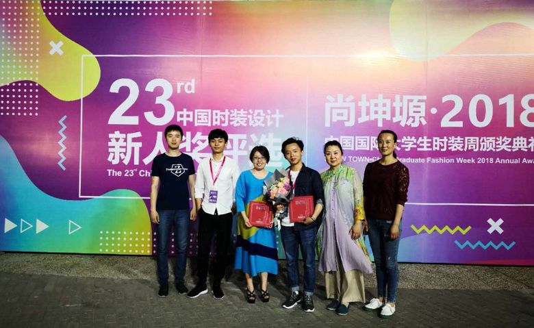 纺织服装学院在学校领导的大力支持下,积极筹划、认真准备,参加了以“大•声”为主题的首届中国国际知名高校服装(服饰)优秀作品展,以静态展方式亮相大学生时装周。我校共展出了精心遴选的学生优秀服装服饰作品20件,与伦敦时装学院、中央圣马丁学院、北京服装学院等34所优秀的中外院校同场竞技,参展作品获得兄弟院校和评委的一致好评。经过学院推荐,服设141班陈亮同学经过作品稿遴选、实物作品展示、现场立体裁剪及答辩等环节的角逐,斩获本届时装周女装设计奖以及“新人奖”优秀奖。