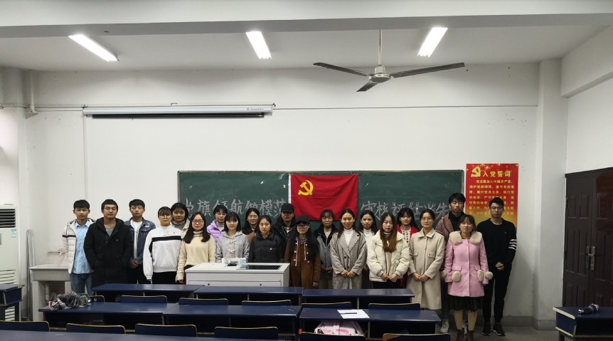 为积极落实校党委开展“党旗领航做模范审核评估当先锋”主题党日活动的要求,以饱满的精神状态迎接学校本科教学工作审核评估,11月21日中午,纺织服装学院纺织学生党支部在d座413教室开展以“不忘入党初心 争做评估先锋”为主题的党日活动。