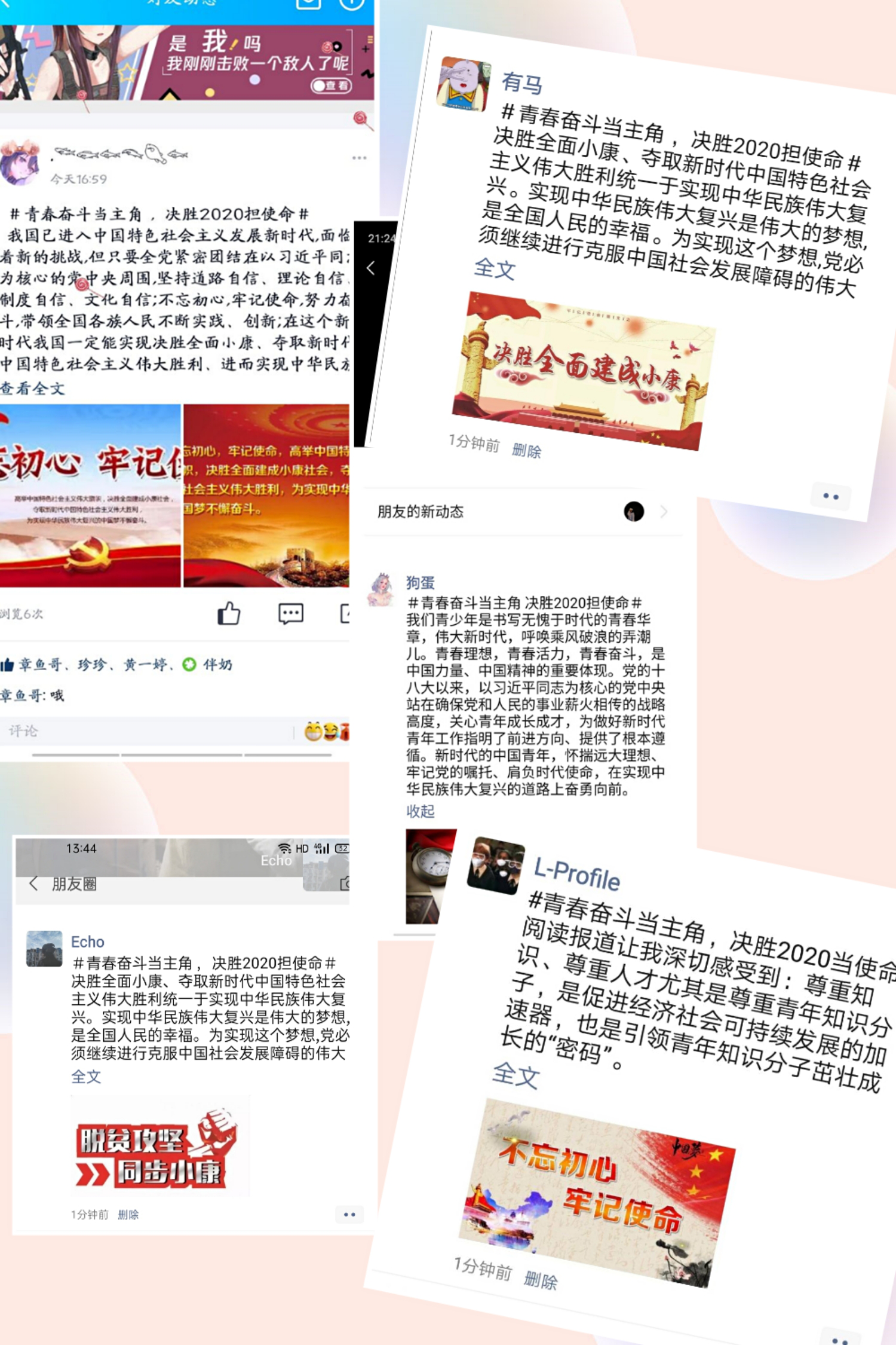 活动通过线上线下相结合的方式进行,各团支部积极组织广大团员青年学习《关于组织开展“我的返家乡实践故事”征集评选活动的通知》精神、《习近平与青年大学生朋友们》系列文章、2020全国两会精神、习近平新时代中国特色社会主义思想关于坚决打赢脱贫攻坚战等一系列重要思想论述和决策部署。同时,各班级团支书结合自身专业特色,采取线上学习分享、组织系列主题征文、撰写学习心得等活动形式,让同学们积极地参与到此次活动中来,学习效果显著。
