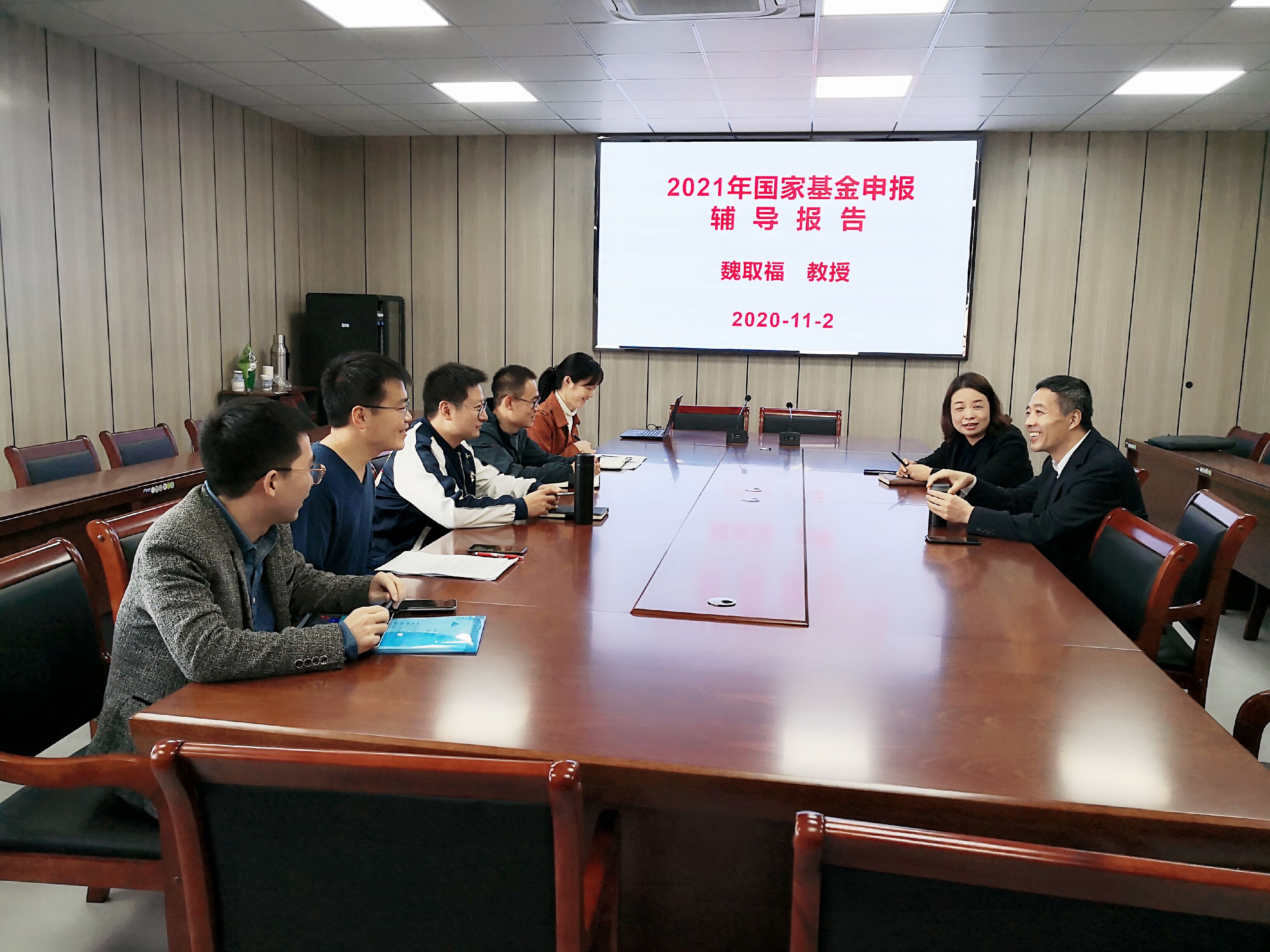 王洪杰等五位教师逐一汇报了基金选题、前期研究成果、拟申报的研究内容和总体思路、凝练的关键问题等,特别针对在申报书撰写过程中遇到的困难和问题提出了讨论。魏取福对老师们汇报的基金工作给予了耐心指导,并结合自己申报国家自然科学基金项目和担任国家自然科学基金项目评审专家的经历,从选题、申报书撰写、申报注意事项等多个方面分享了国家自然科学基金项目申报的经验和技巧,对申报细节进行了详细的解读,就老师们提出的具体问题给予了建设性建议,解答了与会教师项目申报过程中存在的困惑和问题。