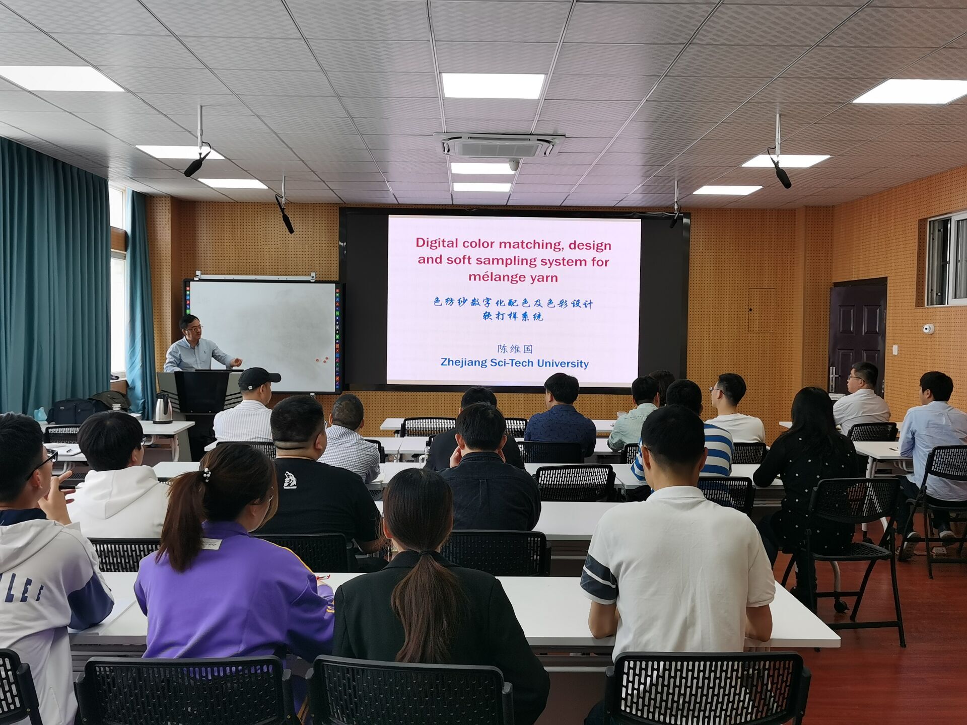 5月17日下午,浙江理工大学纺织科学与工程学院陈维国教授来我院举办了一场题为“色纺纱数字化色彩设计与配色软打样系统及产业化”的学术报告。报告由副院长徐珍珍主持,学院部分老师和研究生在D座601进行了学习交流。
