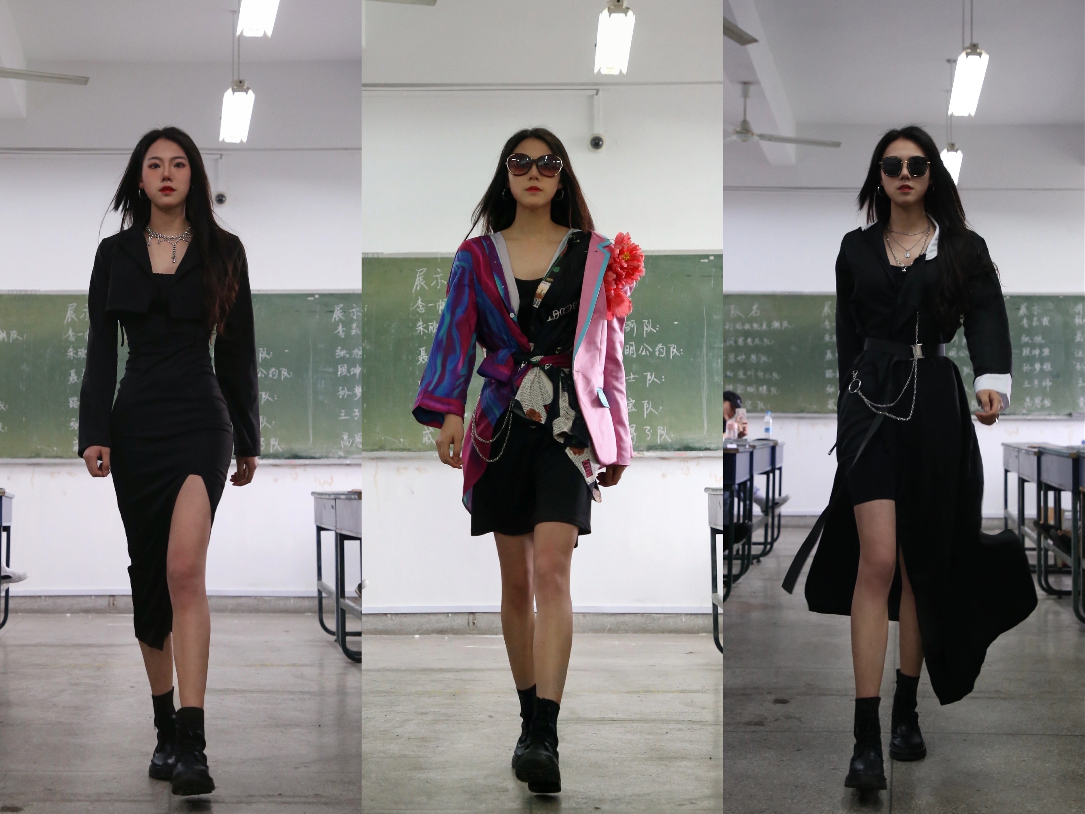 我的课堂我做主。首先主持人登场,结合PPT着装方案,伴随着美妙音乐,同学们先后入场“走台”展示。