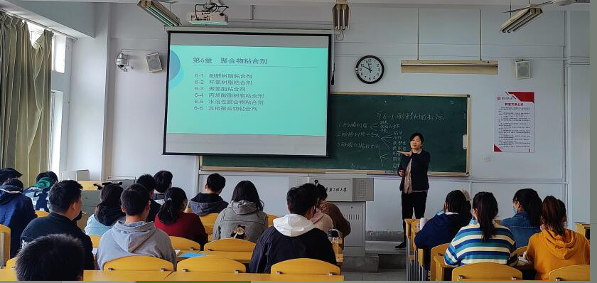 本次“金”彩一课,课程内容为酚醛树脂粘合剂,谢艳霞老师通过航天飞船中粘合剂的应用引申出本次讲课的主要内容,让课程思政和专业知识自然融合。教学过程中,教学思路清晰、内容娴熟,能合理利用信息化教学手段,教学效果良好。