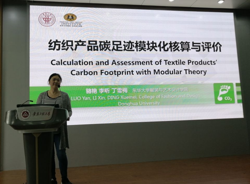 20211027日下午,应纺织服装学院邀请,东华大学服装与艺术设计学院博士生导师丁雪梅教授在5117作了题为《纺织产品碳足迹模块化核算与评价》的学术报告,本次学术报告由纺织服装学院副院长袁惠芬教授主持,服装系教师代表、纺织服装学院研究生及本科生聆听了此次报告。