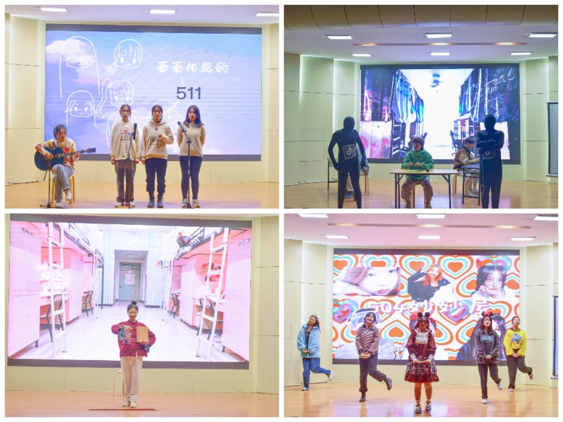 在初赛基础上,共9个团队闯进决赛,比赛由寝室代表演讲、寝室成员才艺表演两部分成绩计入总得分。各个寝室风格不一,创意满满,520寝室酷酷的说唱彰显个性,319寝室的小品见证团结,504寝室英姿飒爽的完美舞蹈彰显着个性。其中女生506寝室风格尤为多元,寝室代表以把饱满的激情分享寝室成员的点滴,寝室成员共同演绎《夏天的风》,表演既有演唱又有舞蹈,其多元的风格充分展示了当代大学生丰富的精神生活和绚丽的精神世界。幽默风趣的语言、精彩绝伦的才艺表演充分展现了大学生的自信和朝气,博得台下观众的阵阵掌声。