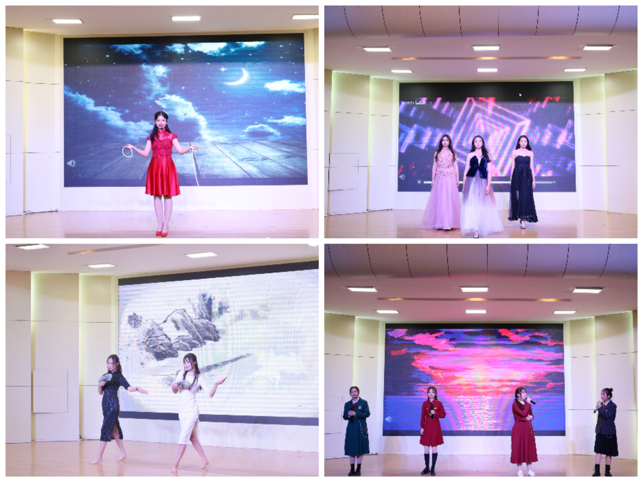 同学们用自编自导自演的方式,展现了在校大学生的青春风采和新颖创意,反映了同学们对于时事热点、大学学习与生活的思考,通过表演表达了对全体师生的新年祝愿和美好希望。