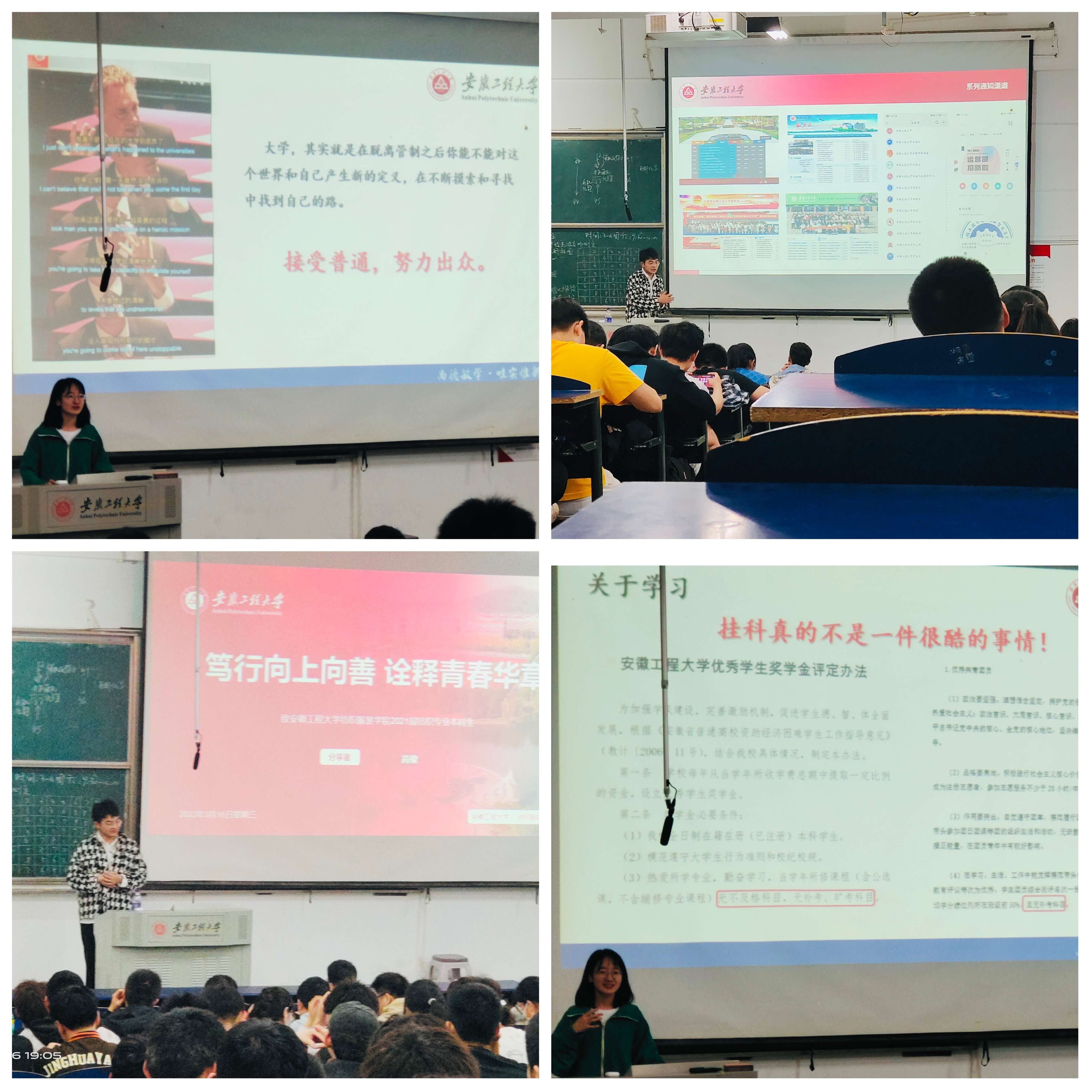 接着非织造191许雨欣学姐则从另一个方面,“为什么要上大学”开始,以自己亲身经历阐述进入大学后如何生活、学习。会上,学姐积极与2021级同学互动,解答各位同学们的疑惑。她认为,大学重要的是“接受普通,努力出众。”“把读书和运动视为生命,此生你不会平庸。”