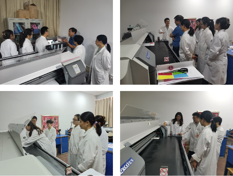 921日上午,国际工程师学院党支部老师莅临纺织服装学院数码印花机实验室,在专业老师的介绍下了解数码印花技术,纺织服装学院研究生党支部党员向老师们演示数码印花过程,由国际工程师学院党支部老师亲自体验手帕图案的印制,并进行特色专业交流。