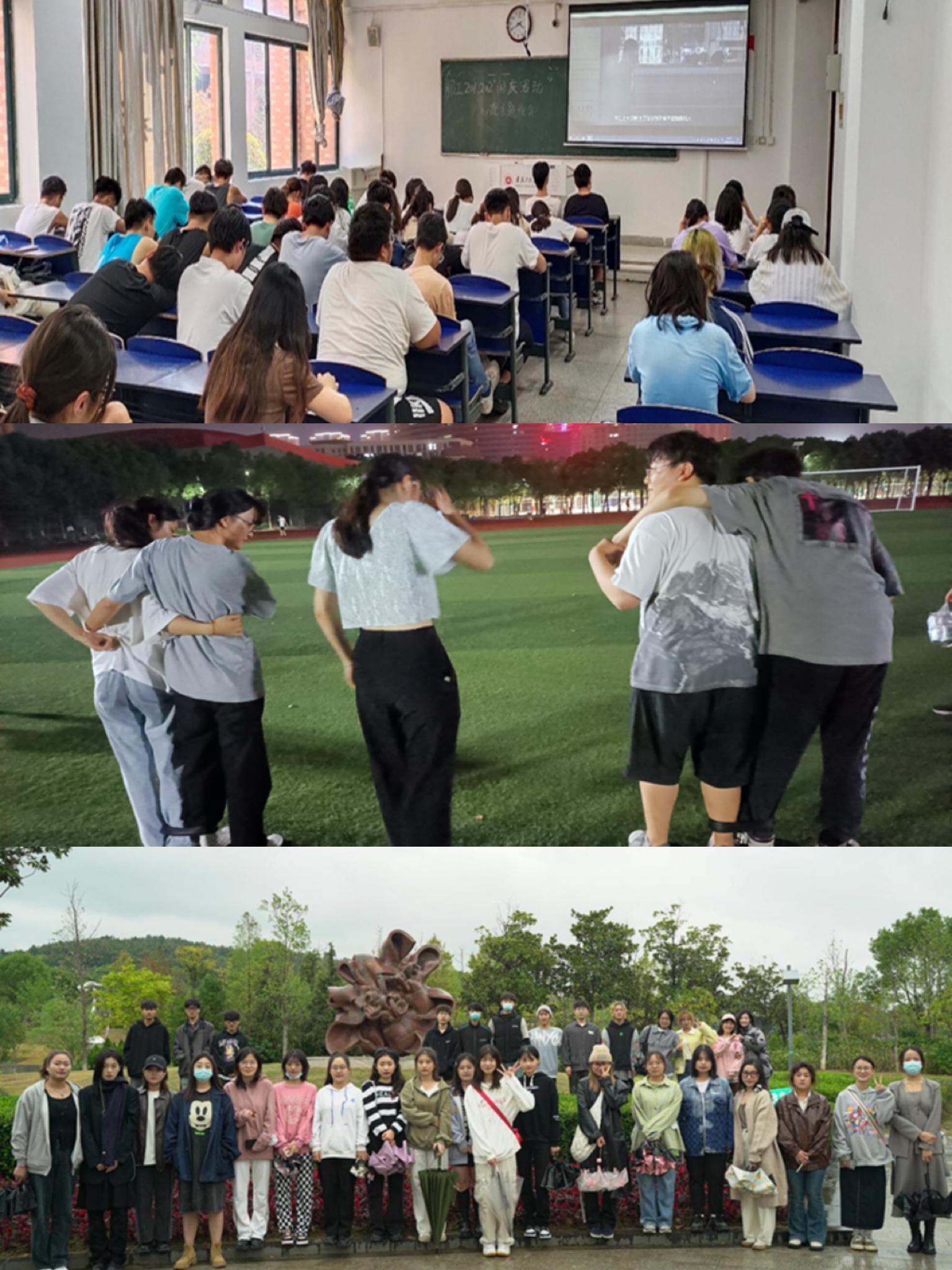 纺织221和服设221在操场开展了真心话大冒险、我说你做,纺织223组织了你画我猜趣味活动,服表221和轻化221的同学们开展了听歌猜曲活动,纺织222和纺织224班开展了报数字游戏。现场气氛活跃,拉近了同学们之间的距离,增强了团队凝聚力。服工20级开展的心理班会上,心理委员动员大家积极分享自己国庆假期的趣闻轶事,共同观看了两部心理微电影。电影均贴近大学生的生活体验,分别讲述了大学生社交恐惧症的生活经历及体会、疫情下的大学生活,旨在号召同学们在疫情之下也要自律学习、积极面对生活,同时也提醒同学们国庆期间出游注意疫情防护。