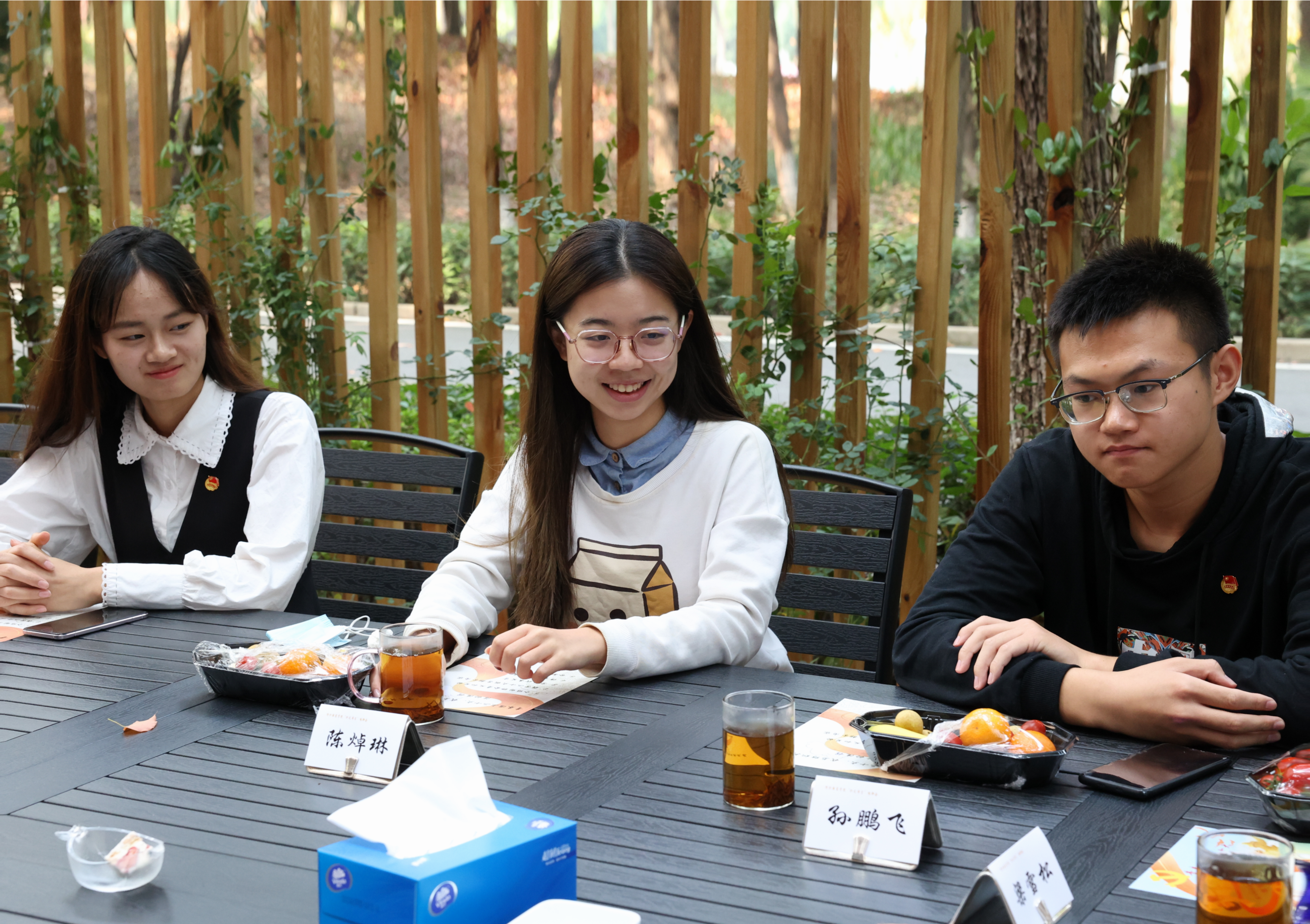 为进一步推动党的二十大精神学习入脑入心,深入落实以学生为中心的教育理念。1112日,纺织服装学院首期 织无布言畅聊会在学院芜湖浆染工作室户外花园举行。本期畅聊会以青春遇上党的二十大,我与纺织共成长为主题,来自学院各年级的11名学生代表和学院党委副书记(主持工作)徐珍珍、学院副院长袁惠芬、学院党委副书记梁雪松、院团委副书记陈倩及辅导员童超梅、杨爽老师参加。活动现场准备了美食和茶点,大家边吃边聊,气氛轻松愉悦。