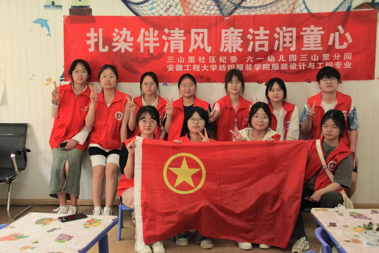 为推深做实“三全六专”育人实践,推动“团百花”志愿服务项目有序推进,进一步提高大学生的社会实践能力,420日,纺织服装学院22级学生来到三山里社区幼儿园开展“扎染伴清风 廉洁润童心”幼儿园志愿服务活动。