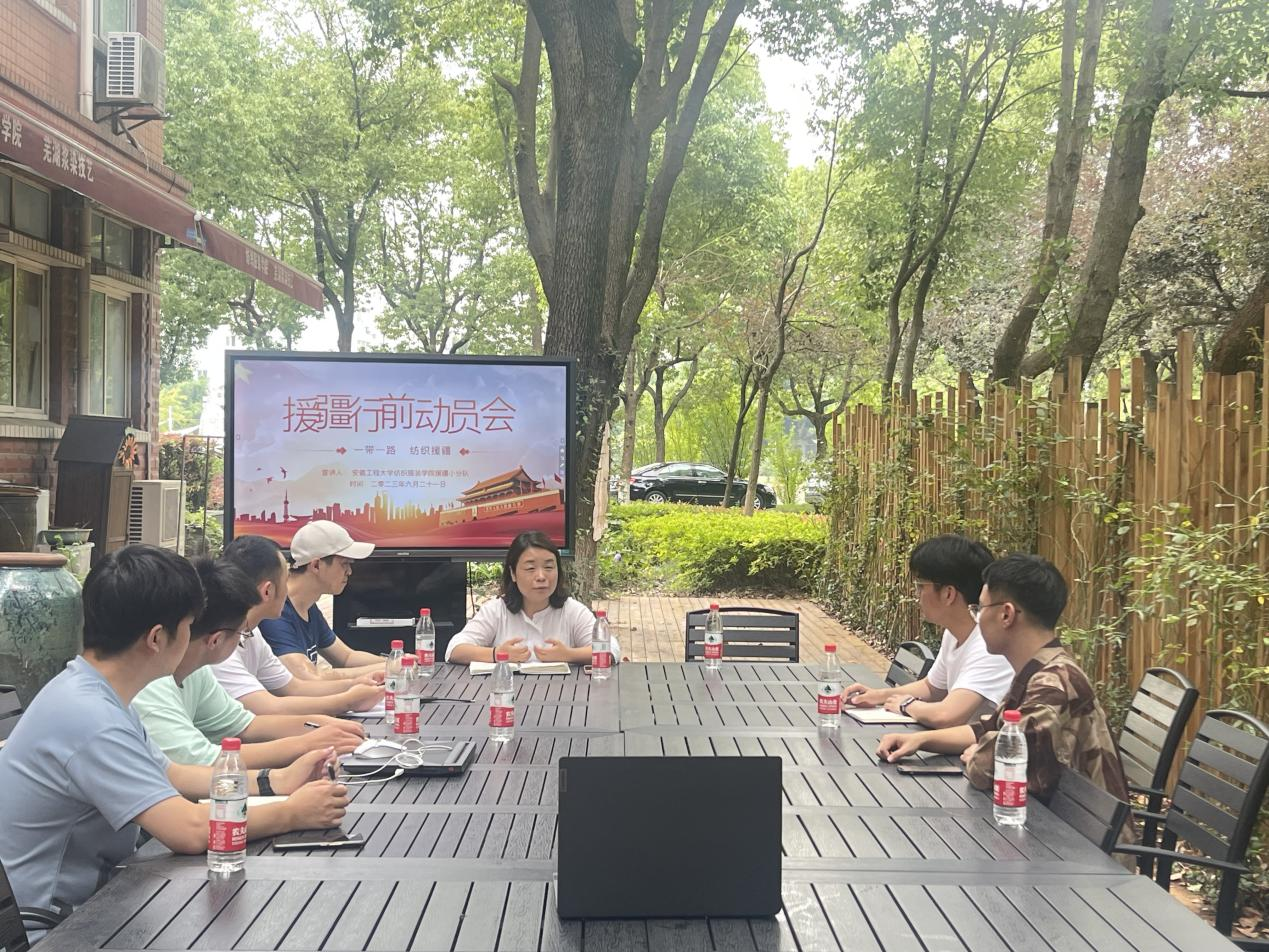 为深入学习贯彻习近平总书记在考察新疆时的重要讲话精神,响应国家“一带一路”倡议,全面落实学校“三抓”工作要求和“三全六专”育人实践,充分发挥学院纺织专业优势,助力新疆纺织行业发展,培育暑期“三下乡”社会实践活动品牌,620日,“一带一路”全国大学生纺织援疆团动员部署会在纺织服装学院芜湖浆染工作室户外花园举行,纺织服装学院党委副书记(主持工作)徐珍珍、院团委书记陈倩、援疆团带队老师马翔、盛明非以及全体成员参加会议。会议由徐珍珍主持。