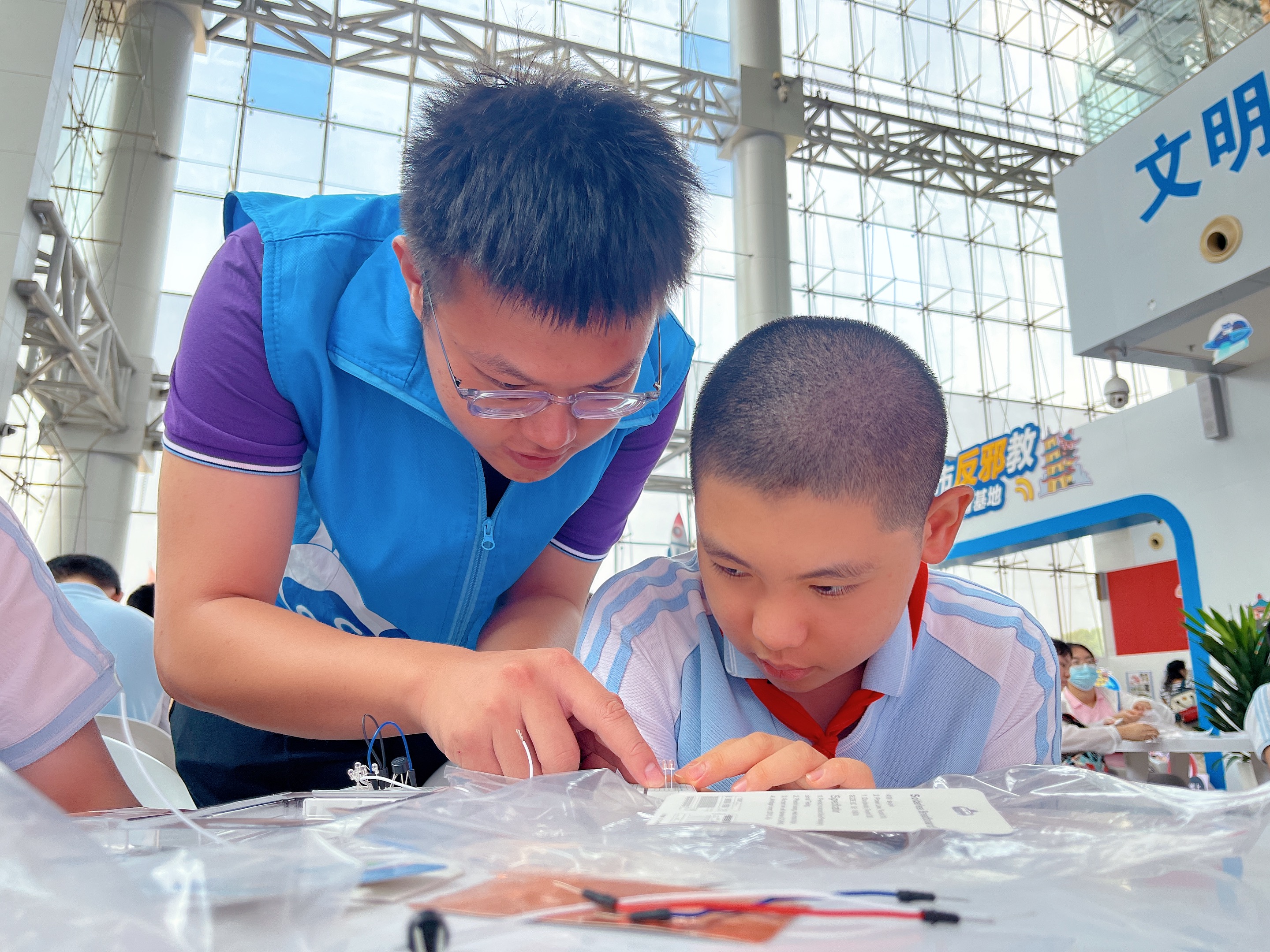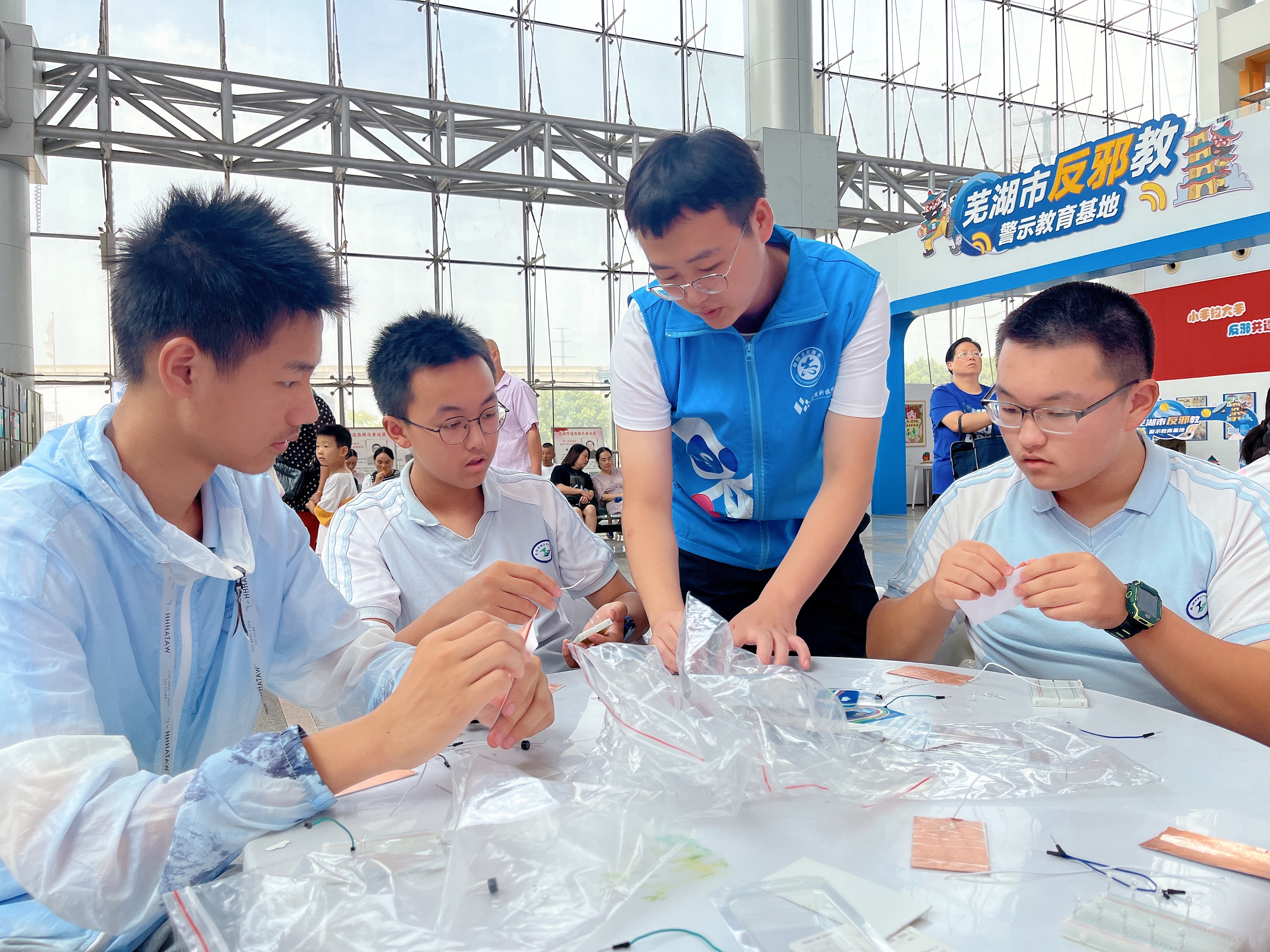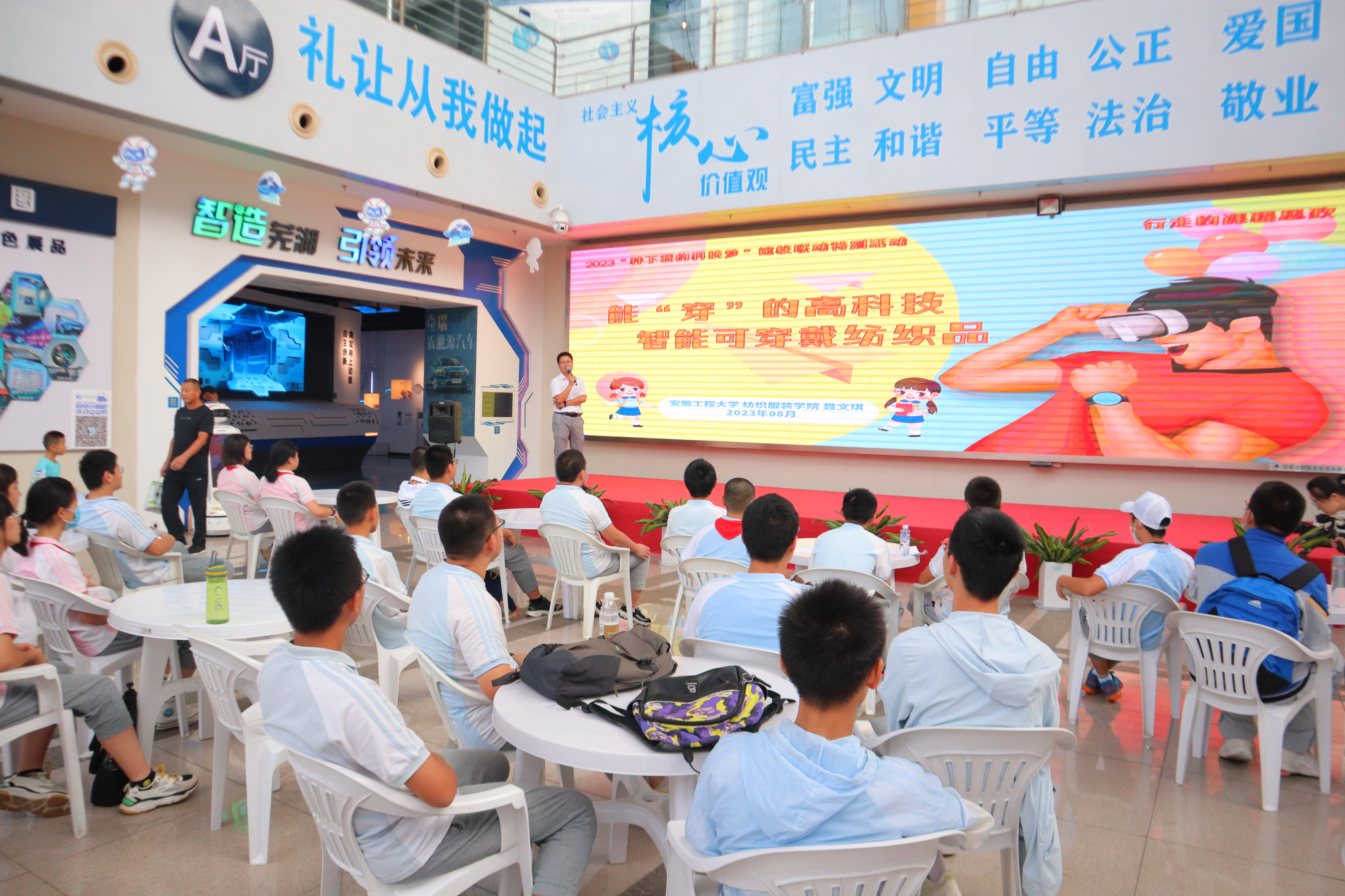 8月25日,纺织服装学院“行走的课程思政”公益团队赴芜湖科技馆开展“种下我的科技梦”馆校联动特别活动。纺织专业教师党支部聂文琪老师以“能‘穿’的高科技——智能可穿戴纺织品”为主题,通过介绍智能纺织品的功能性、用途及其给日常生活带来的便捷,向芜湖市第二十七中学生开展了一次精彩富有科技色彩的主体科普活动,激发孩子们对未知探索的兴趣。