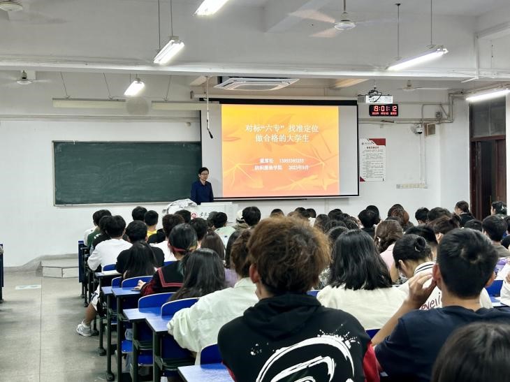 新学期伊始,学院党委副书记梁雪松以“对标‘六专’找准定位,做合格的大学生”为题,结合新生情况和现实问题,面向新生上了一堂生动而具有启发意义的行为养成课。他从“大学第一课‘军训和入学教育’大家表现怎么样?”问题引入,对新生的入学教育成果进行“课堂测验”,从大学要学什么、做什么等方面要求同学们要对标“六专”找准自己的定位。结合学生成长中出现的正反面典型案例,开展课题讨论,引导同学们进一步提高思想认识,找准成长坐标。此外,他还就“如何申请入党?”这一同学们关心的话题进行了详细阐述,介绍入党的条件和流程,让同学们对入党有了进一步的了解。