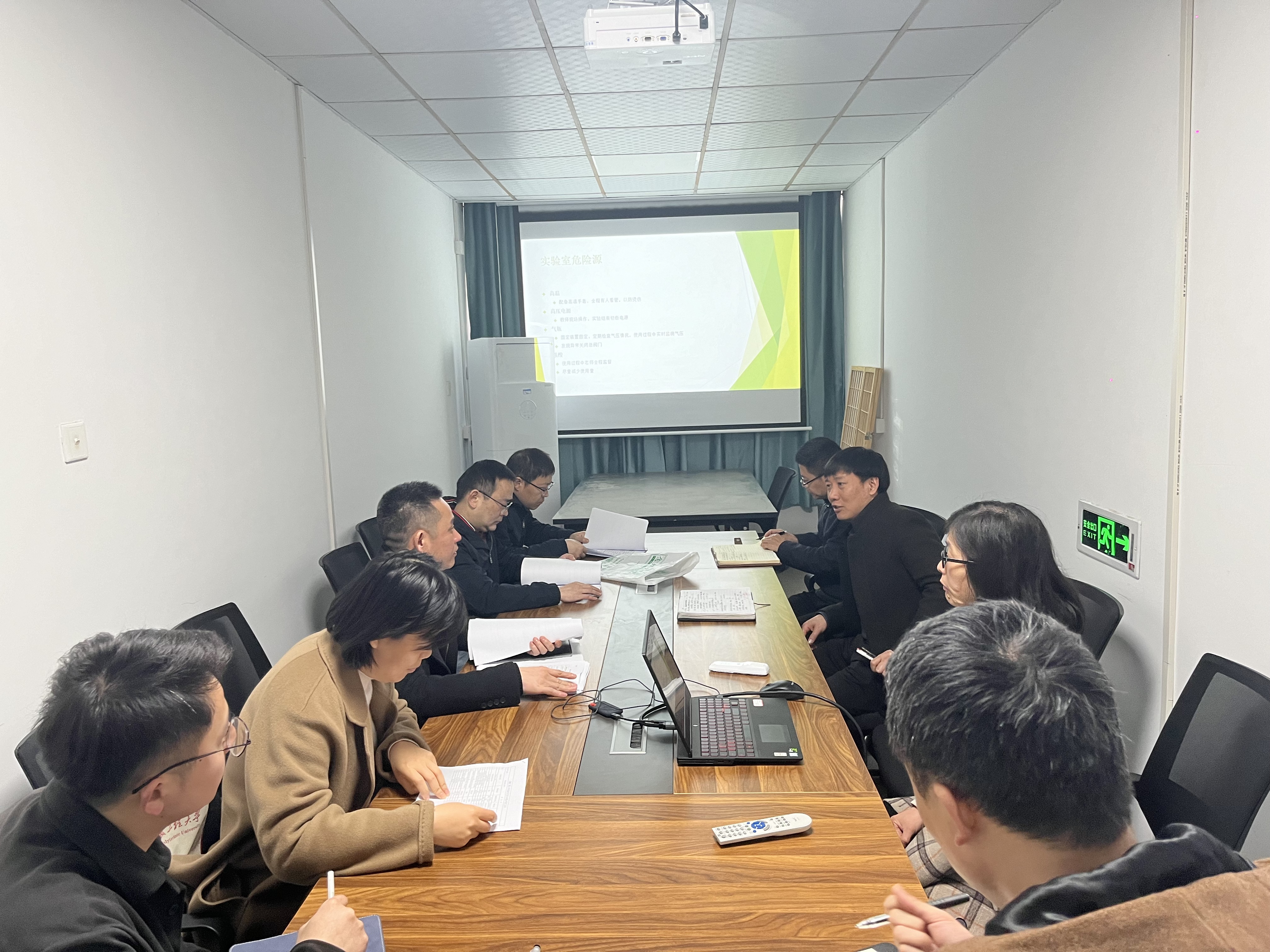 邹梨花基于我院实验室日常安全管理、风险防控应对措施、教工及学生预约实验室机制等多个方面向专家组成员进行PPT展示及讲解,会后针对含有高压电源、气瓶、腐蚀性溶液等安全隐患的教学实验室进行实地考察。专家组对我院实验室全流程日常管理及安全防范工作表示了充分肯定,同时分享了生食学院在实验室危险应急、危化品管理等方面的经验,在多个方面进行了充分交流并提出意见和建议。