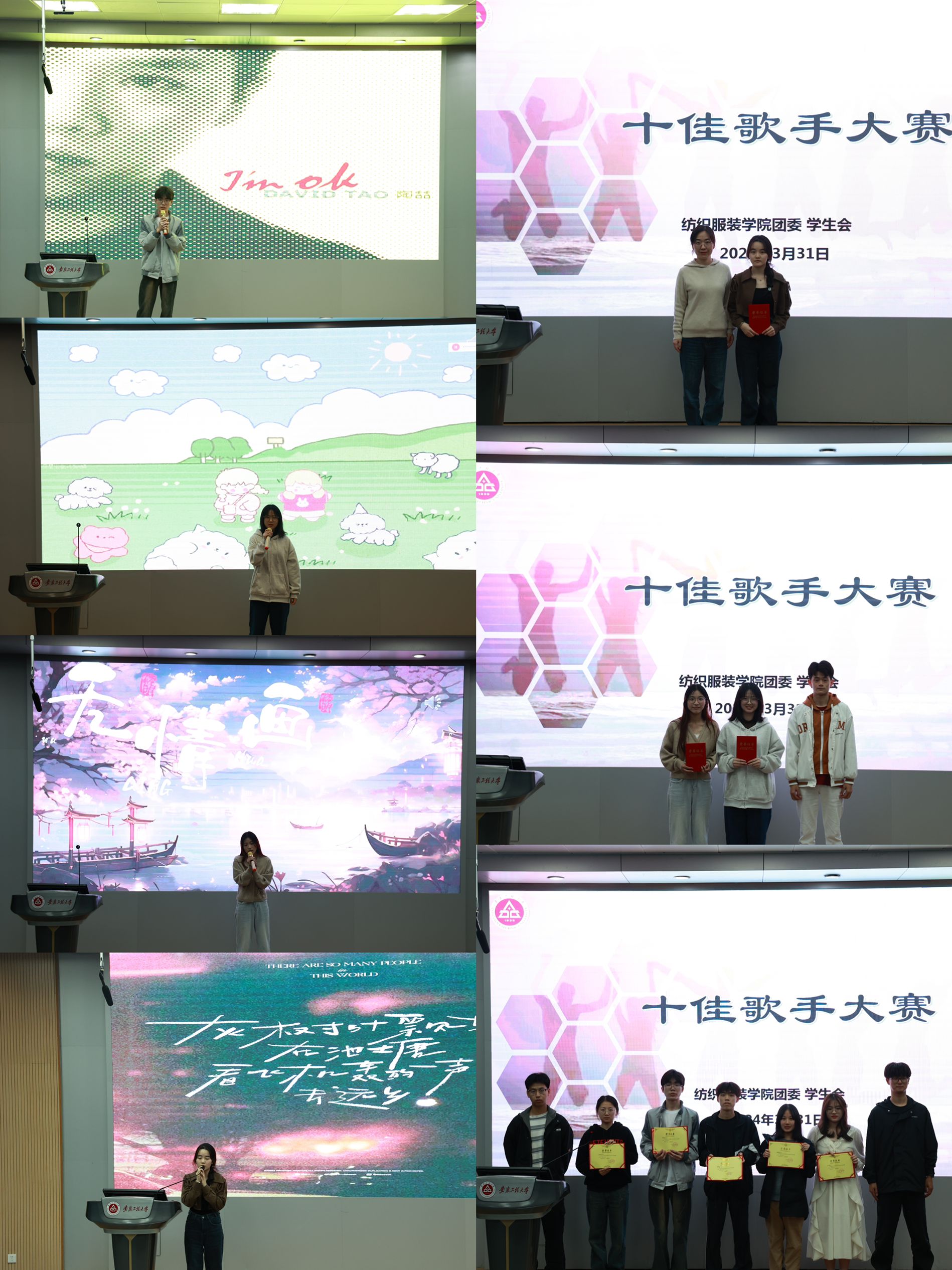3月31日,纺织服装学院“校园十佳歌手”海选大赛在5J117隆重举行。院团委书记陈倩、团学组织负责人和23级学生代表共同观看了本次比赛。经过评委们集体评议,纺创221刘絮瑶荣获一等奖,服设231周小华等四位同学荣获二等奖,纺织211郑皓月等三位同学荣获三等奖。