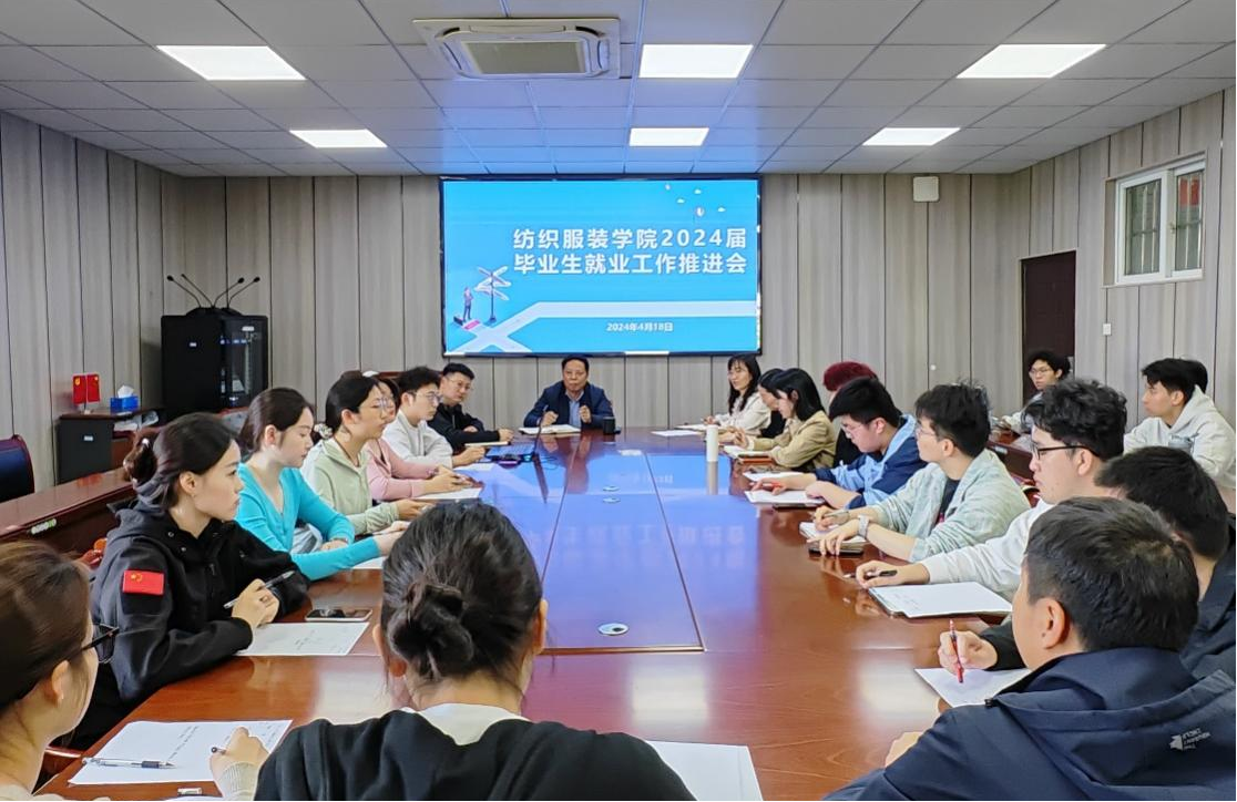 4月18日,纺织服装学院召开就业工作推进会,学院院长李长龙、各系负责人、毕业班辅导员和毕业班学生干部代表参加会议,会议由学院团委书记陈倩主持。