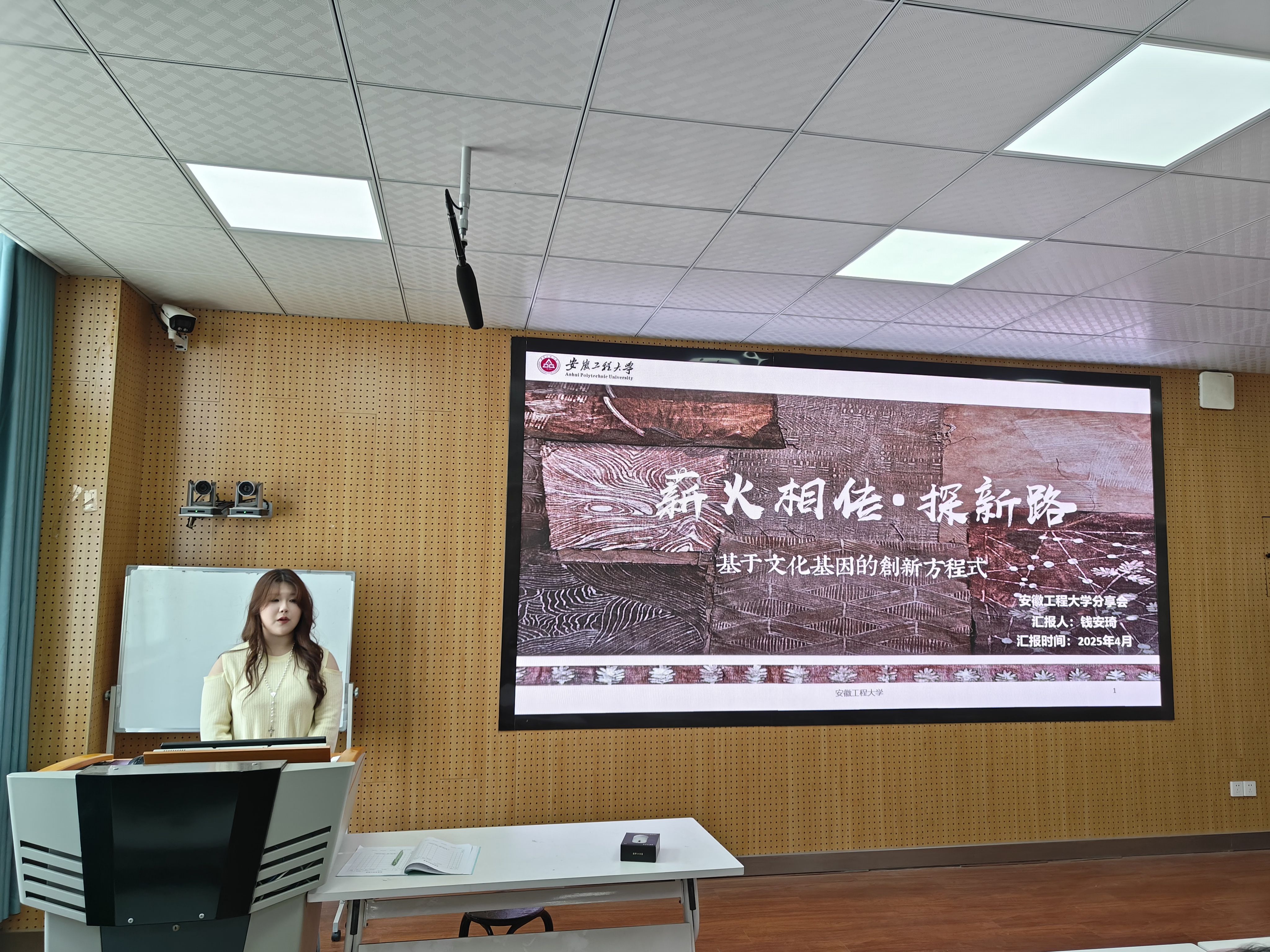 49日,纺织服装学院在D601教室举办主题为“薪火相传,探新路——基于文化基因的创新创业方程式”创新创业沙龙活动。活动由纺织服装学院教学院长陶旭晨主持,23级服装与服饰设计专业本科生钱安琦作为主讲人,分享了其团队在非遗创新创业方面的经验与成果。