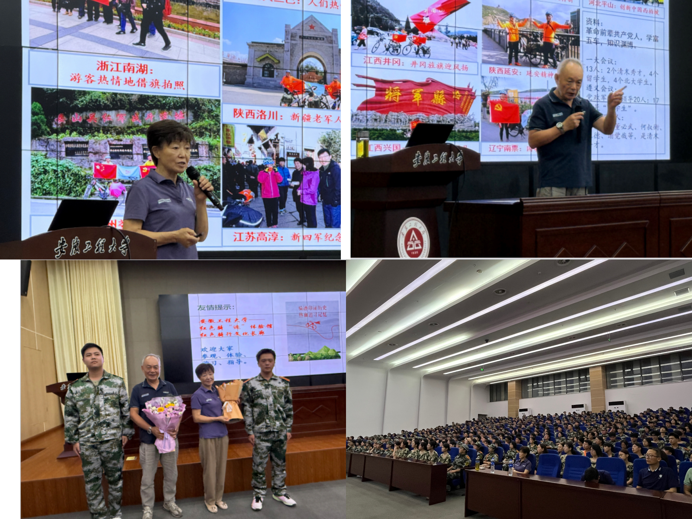 赵国庆、曹锦芬夫妇为庆祝中国共产党百年华诞,自2008年8月,踏上了一条不寻常的“红色骑行”之路。13年来,他们骑跨万水千山,骑行总里程达104986里,拍摄照片3万余幅、影像60多个小时,写下50万字日记。他们结合骑行故事,以党史为脉络,带领同学们重温革命历史,感悟理想信念,传递“红色精神”。他们激励新生牢记初心使命、赓续红色血脉、传承红色基因,积极向党组织靠拢。