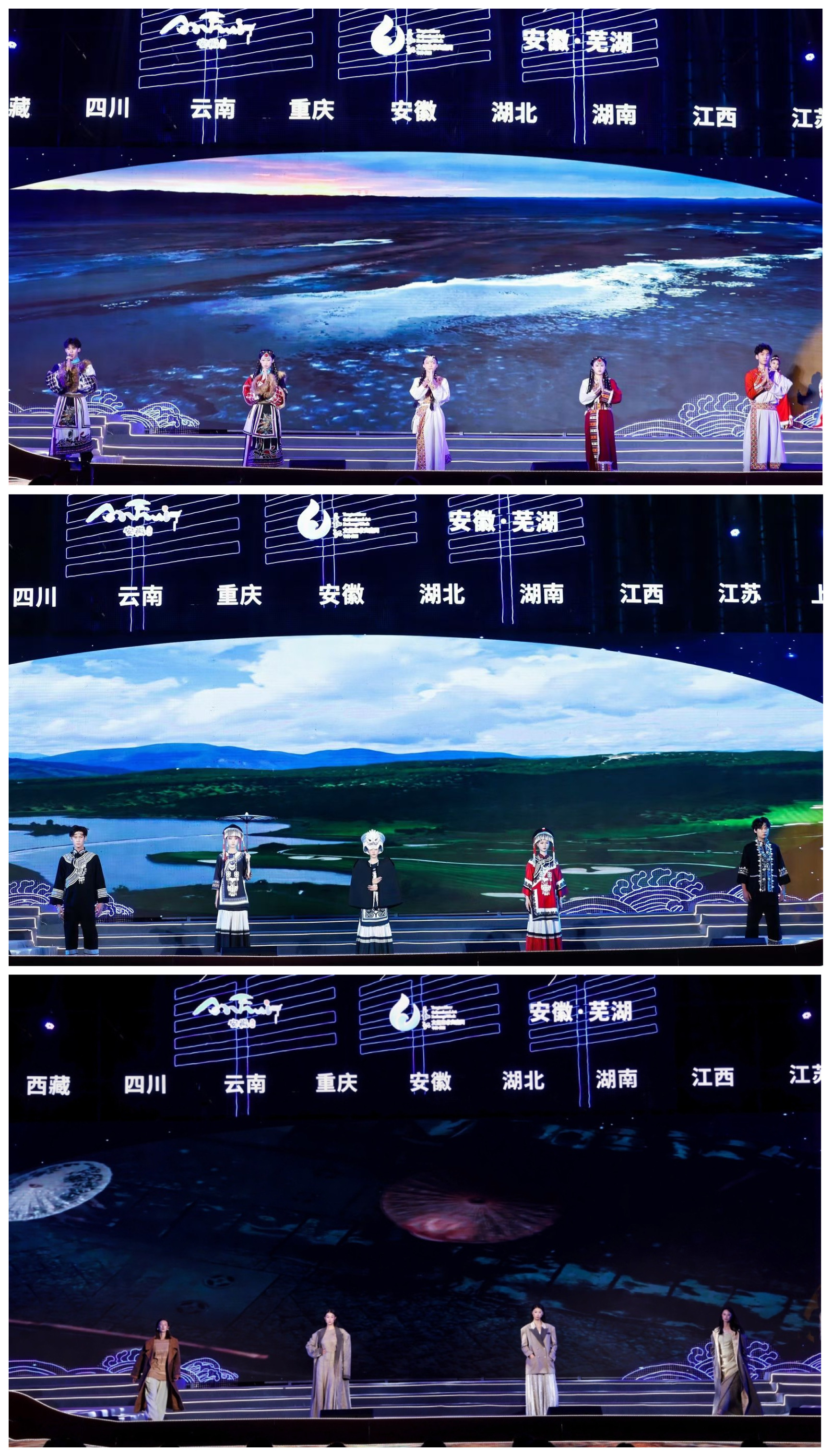 为精准呈现长江流域服饰的文化内涵,学院组建了由专业教师牵头的主创团队,从服饰历史考据、台步编排到舞台呈现进行全流程指导。师生们查阅大量文献资料,深入研究流域各地各民族服饰特色,将芜湖浆染技艺等本土非遗元素与现代时尚理念相融合,在演出中实现了“历史与现代的对话”。