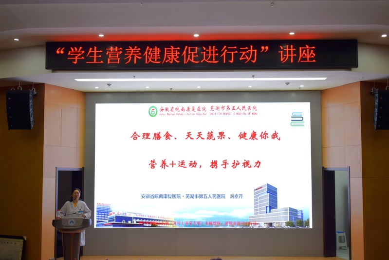 5.20”中国学生营养日来临之际,校医院、管理工程学院邀请安徽省皖南康复医院、芜湖市第五人民医院防保科科长刘素芹主任医师,于2019年5月15日在C座7楼报告厅举办学生营养健康知识宣讲活动,为大学生们进行关于合理膳食,增强体魄方面的“营养+运动”健康饮食知识讲座。