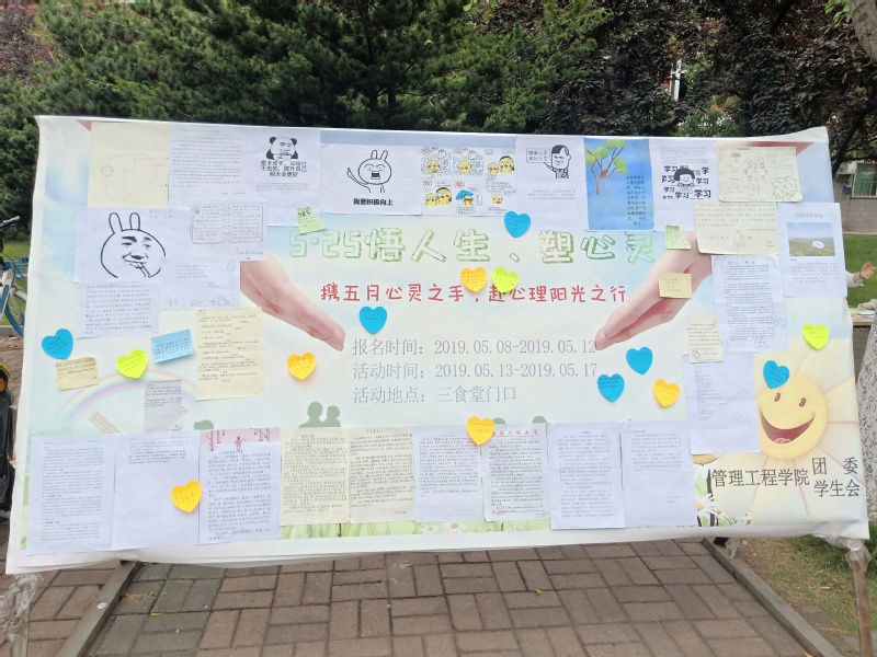 为呼吁大学生关注自身心理健康,增强心理保健意识,塑造积极、健康、乐观的阳光心态,管理工程学院于五月中旬举办了“悟人生 塑心灵”5·25心理健康活动。