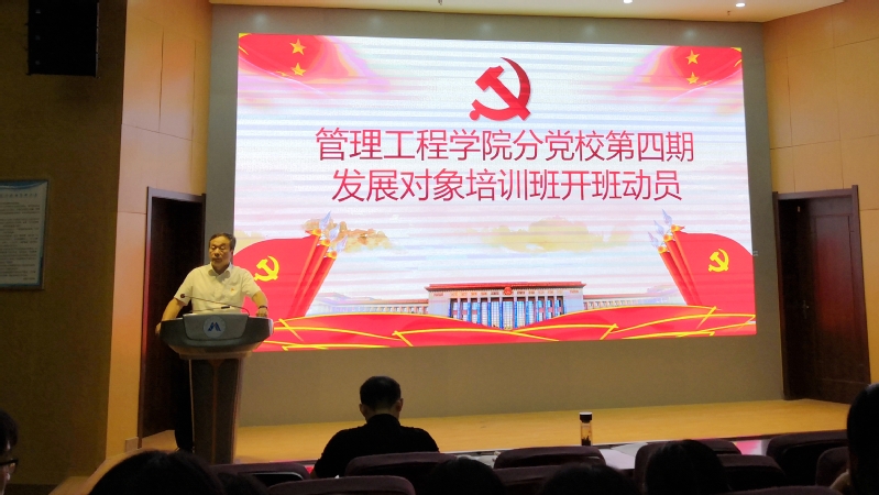 925日下午,管理工程学院分党校第四期发展对象培训班在C7楼报告厅开班。学院党委书记邬海量、组织员朱文明、班主任周向阳、90名发展对象参加了开班动员会。