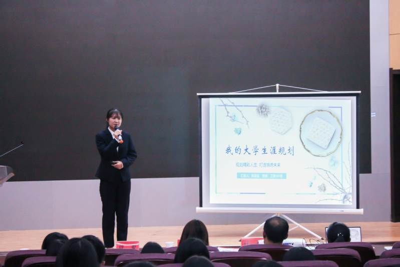 经过初赛的选拔,共有10名选手进入决赛。选手们借助PPT展示他们对未来四年大学生活的规划,结合自我认知、自我定位、外部环境、未来期待等方面对自己的大学生涯进行规划,主题鲜明,思路清晰,充分展现了当代学子朝气蓬勃的精神面貌。各位选手的策划案在自我与外在条件探索之余,还给我们提供了更多的视角去看待大学生活,郝海娟同学用“魂如庄子,心如始皇”表达自己对目标的坚定追求,万小雅同学用“选择是一次次塑造自我的过程”,告诫同学们认清自我,做出无悔于自己的选择。