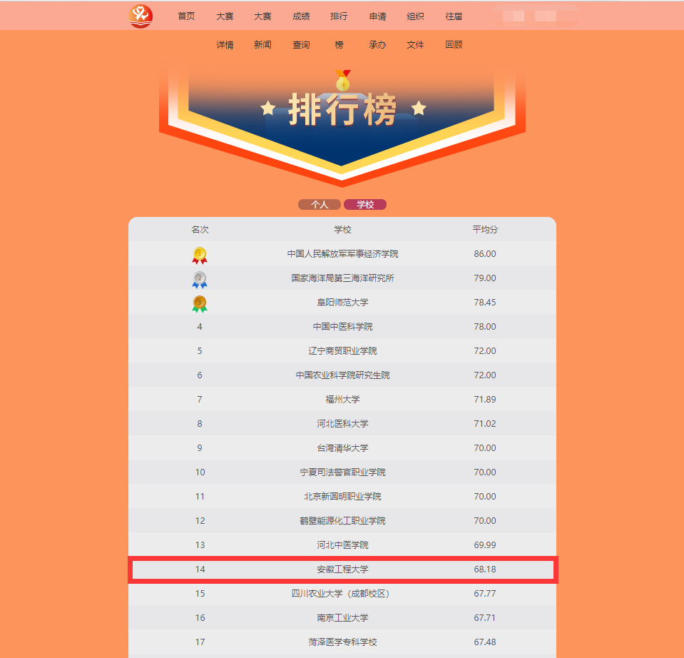 在线上答题中,成绩十分优异,学校排名位列全国参赛学校第14名,我校个人最佳排名位列全国第45名。