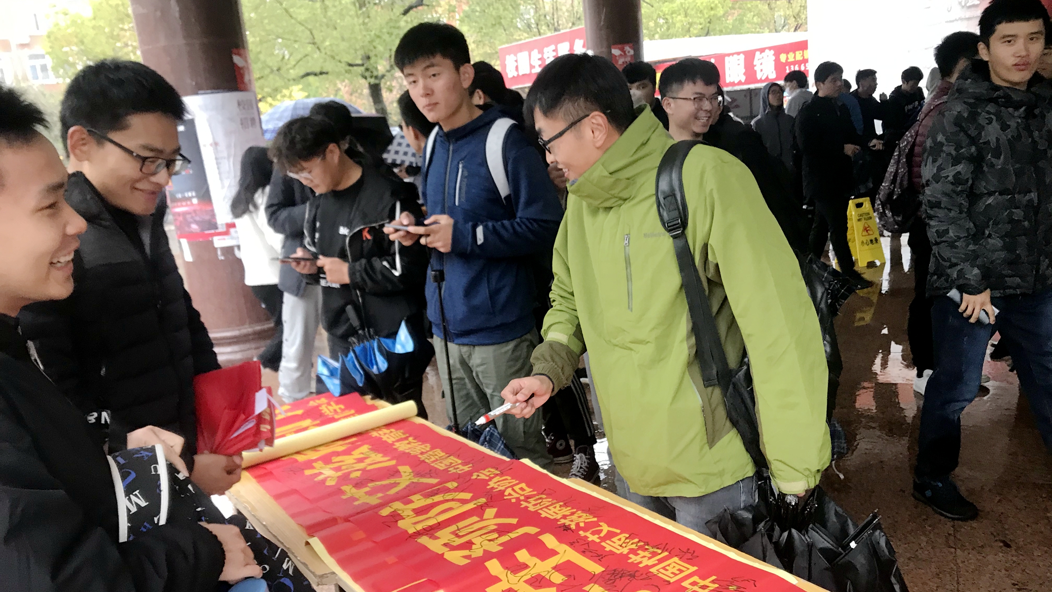 在线下宣传环节中,质量管理工程专业学生党支部在三食堂前摆设宣传台,鼓励广大同学参与答题,学习了预防艾滋病的相关知识,并且随机抽奖赠送小礼品。现场负责线下宣传的学生党员不忘给每一位参与答题的同学讲解预防艾滋病重要性,希望大家动员身边更多的人多学习,多了解。只有正确的了解艾滋病的由来及其传播方式,才可以更好的预防。