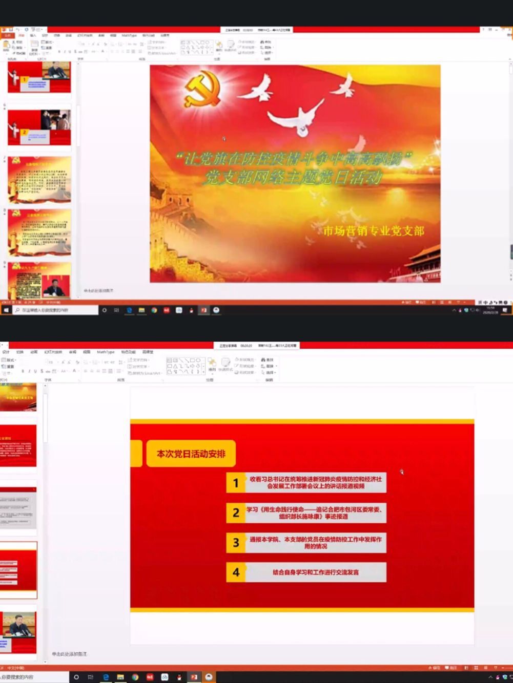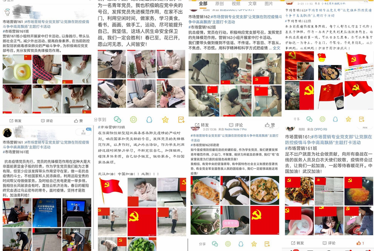 新型冠状病毒感染的肺炎疫情牵动着全国人民的心。当前,疫情防控工作到了最关键阶段,形势依然严峻复杂。随着抗战线的延伸,开学时间被迫延迟。面对一场没有硝烟的战“疫”,市场营销专业学生党支部的党员同志们开展“抗击疫情,我们在行动,让党旗在防控疫情斗争终高高飘扬”的主题党日活动。
